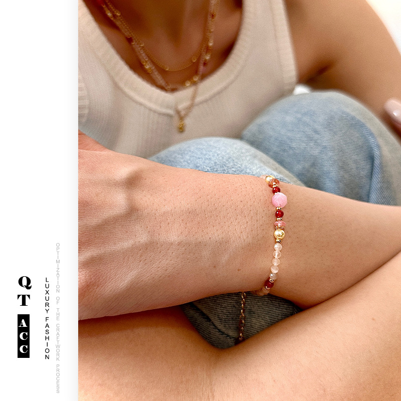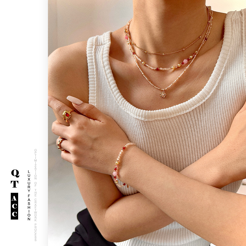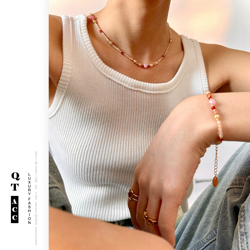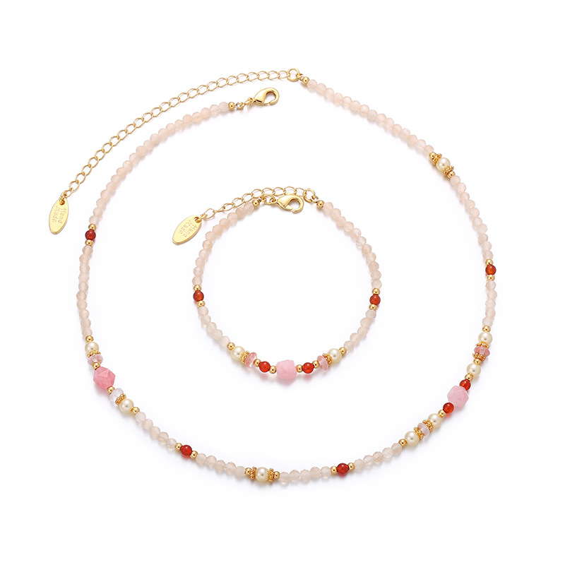 Pink Sweet Dopamine Beaded Necklace Bracelet suit Pearl Spring and Summer High-grade All-match Color Natural Stone Jewelry