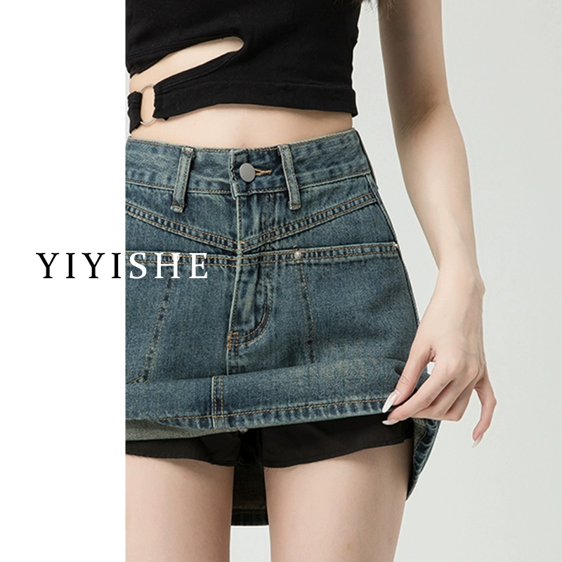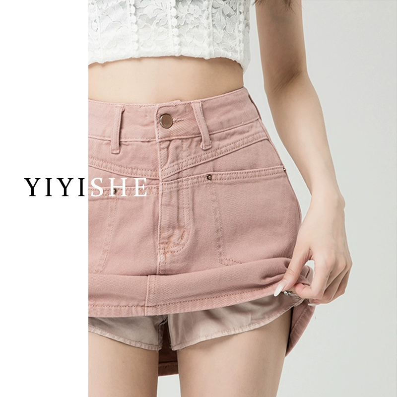 | nameOriginal | Pink thin A-line design half-length denim skirt |