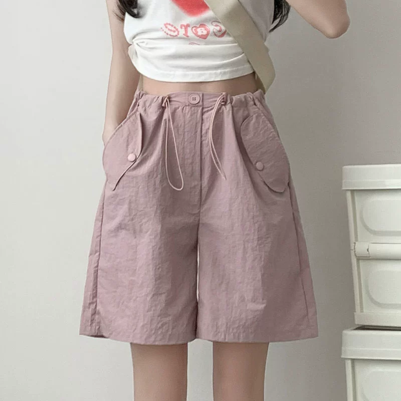 | nameOriginal | Pink thin high-waisted casual quick-drying cargo shorts |