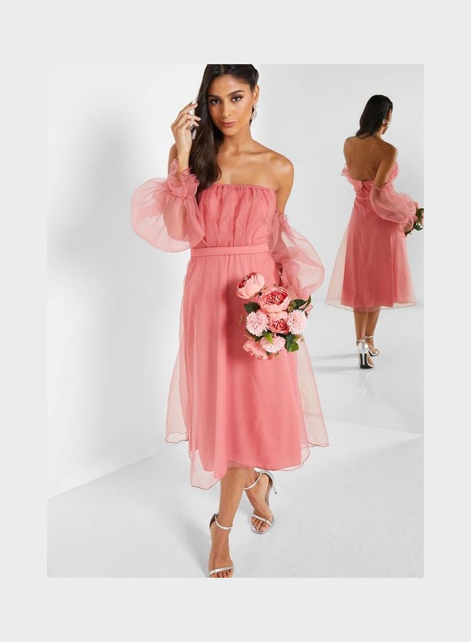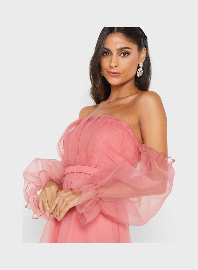| nameOriginal | Mesh Sleeve Pleat Detail Tulle Dress Pink |