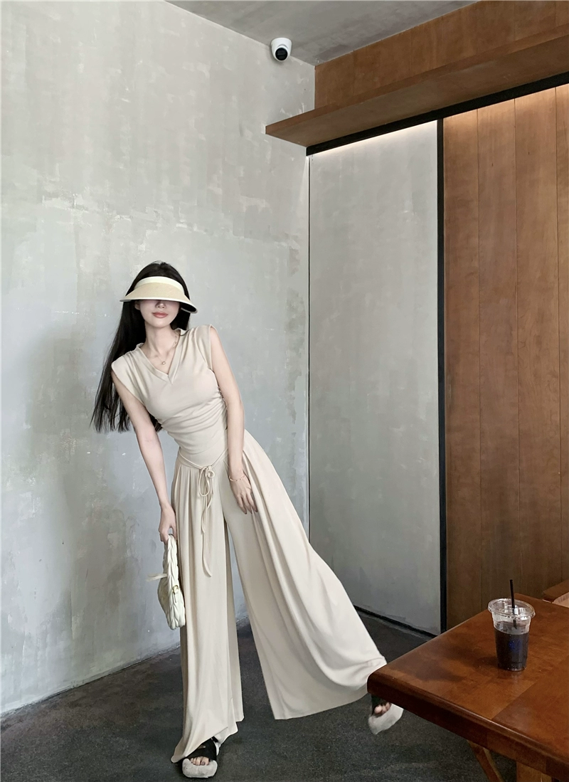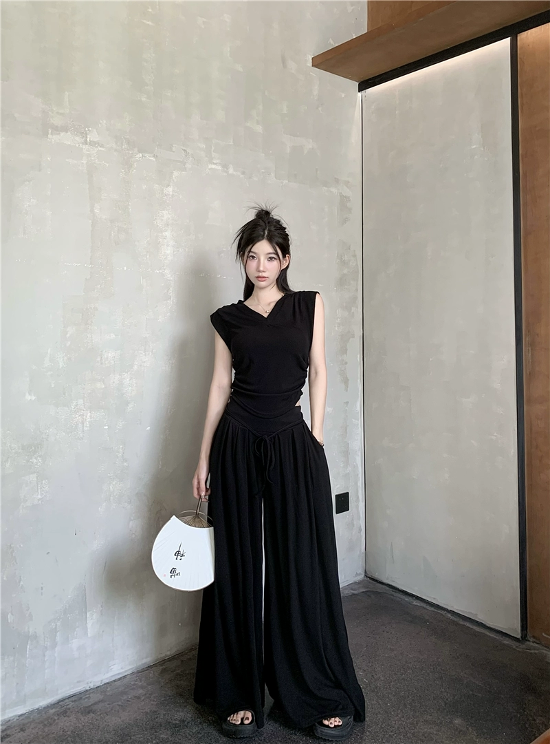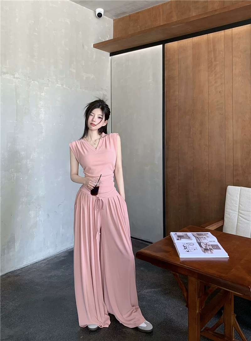 | nameOriginal | Pink v-neck T-shirt, strappy casual pants, two-piece vest |