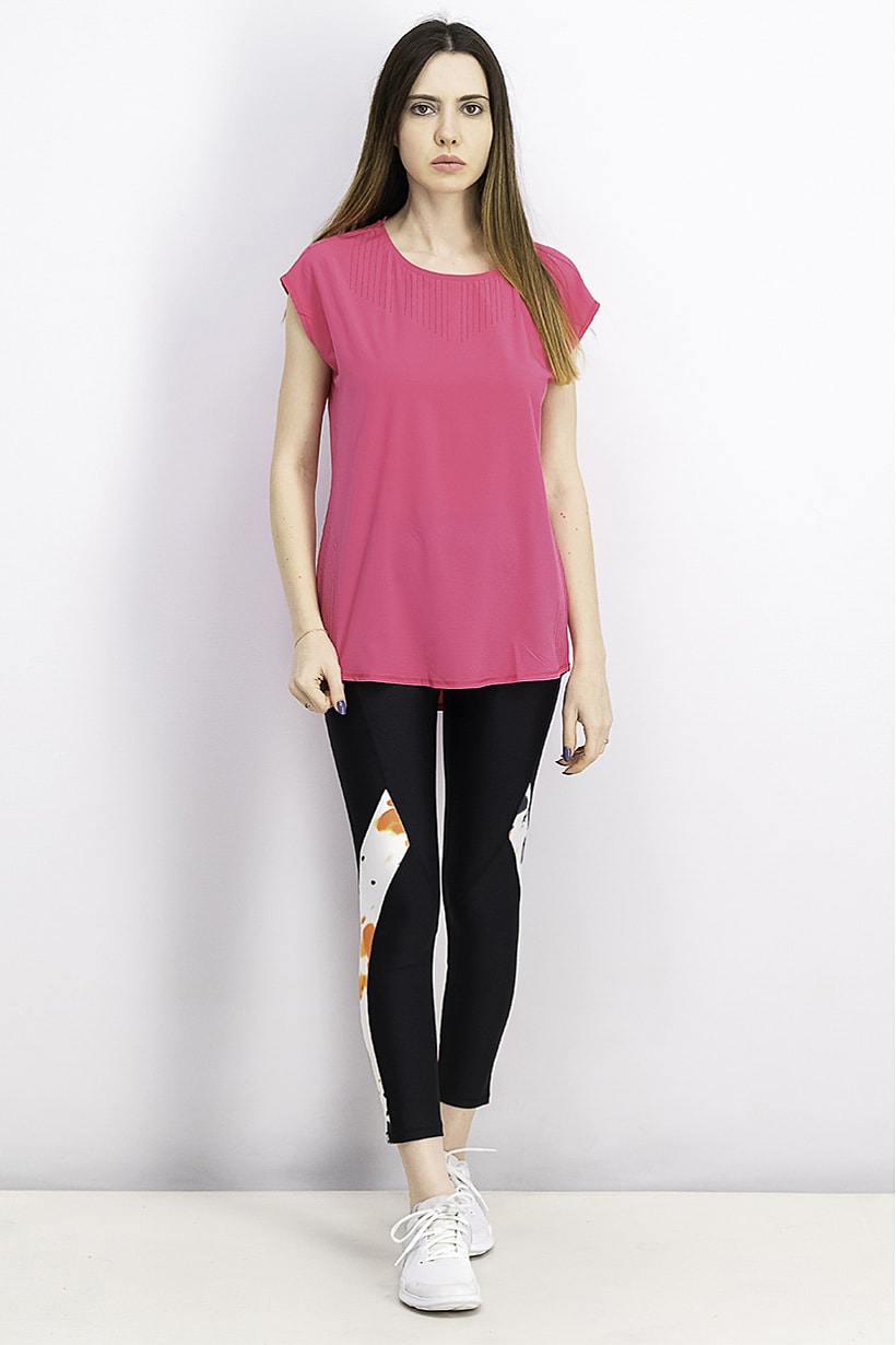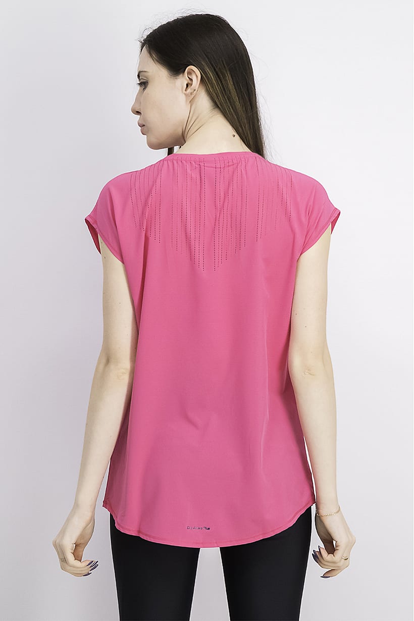 Care : Machine washable, Ideal For : Women, Sleeve Length : Short Sleeve, Types of Neckline & Collar : Round neckline, Types of Sleeve : Short sleeve, Fabrics : 100% Polyester, Types of Closures : Pullover, Color Family : Pink, Sportswear Type : Tops, Occasion : Sport, Pattern & Print : Plain/Solid, Type of Sport : Running, Types of Hem : Straight hem,