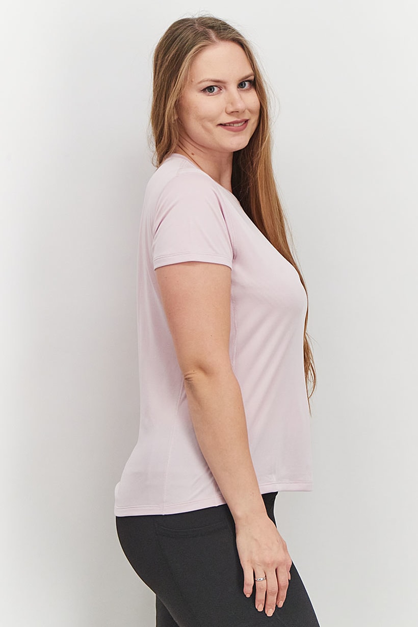 | descriptionOriginal | Bottom Hem : Straight, Care : Machine washable, Fit : Sportswear Fit, Ideal For : Women, Size shown : International, Sleeve Length : Short Sleeve, Thickness : Light, Type of Sport : Running, Types of Neckline & Collar : Crew neckline, Disclaimer : Product color may slightly vary due to photographic lighting sources or your monitor settings., Fabrics : 100% Polyester, Occasion : Sport, Pattern & Print : Brand Logo, Sportswear Type : T-Shirt, Types of Closures : Pullover, Color Family : Pink, |