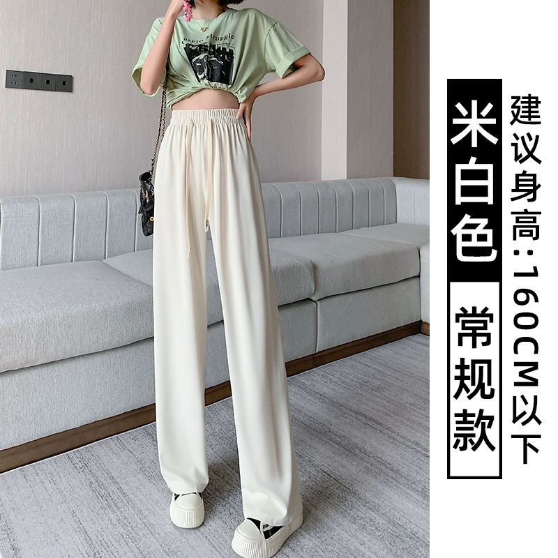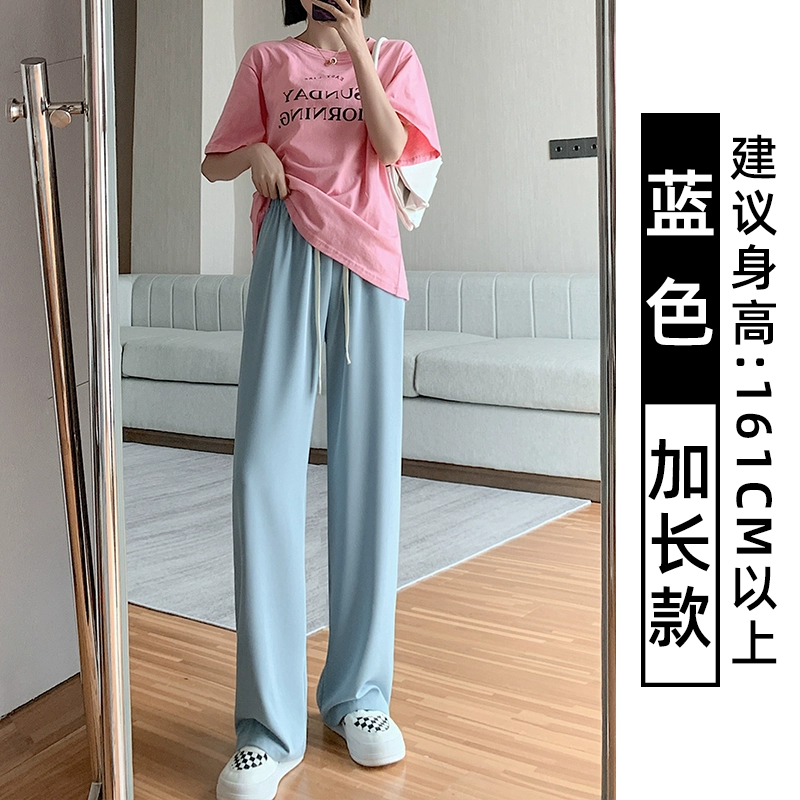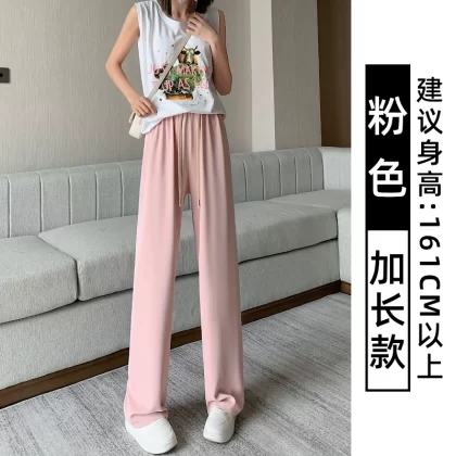 Pink women in summer high waist casual thin wide leg pants