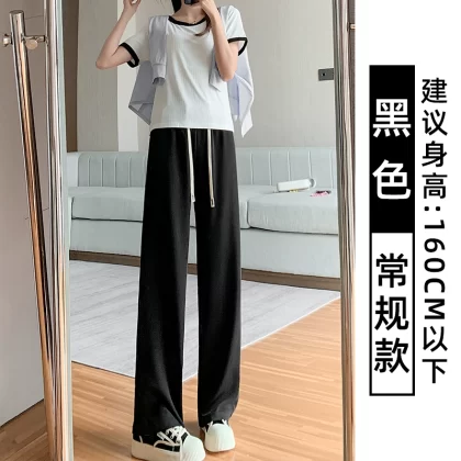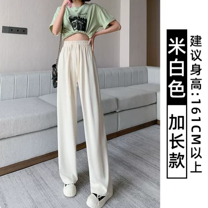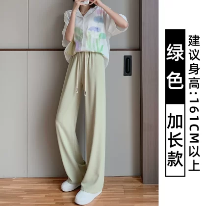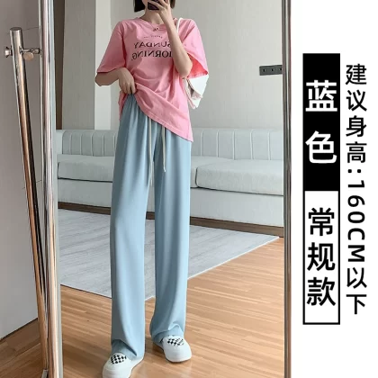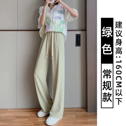 Pink Women's Summer High Waist Casual Thin Wide Leg Pants