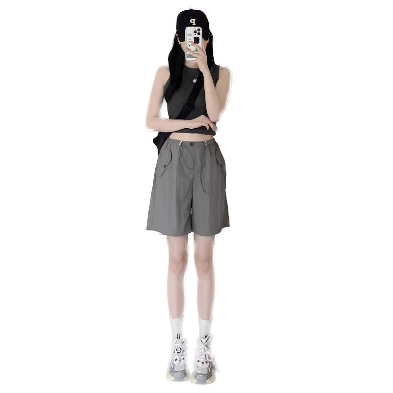 | nameOriginal | Pink Workwear Shorts Women's Summer Thin High Waist Casual Wide Leg Pants Short Quick-drying American Sports Pants |