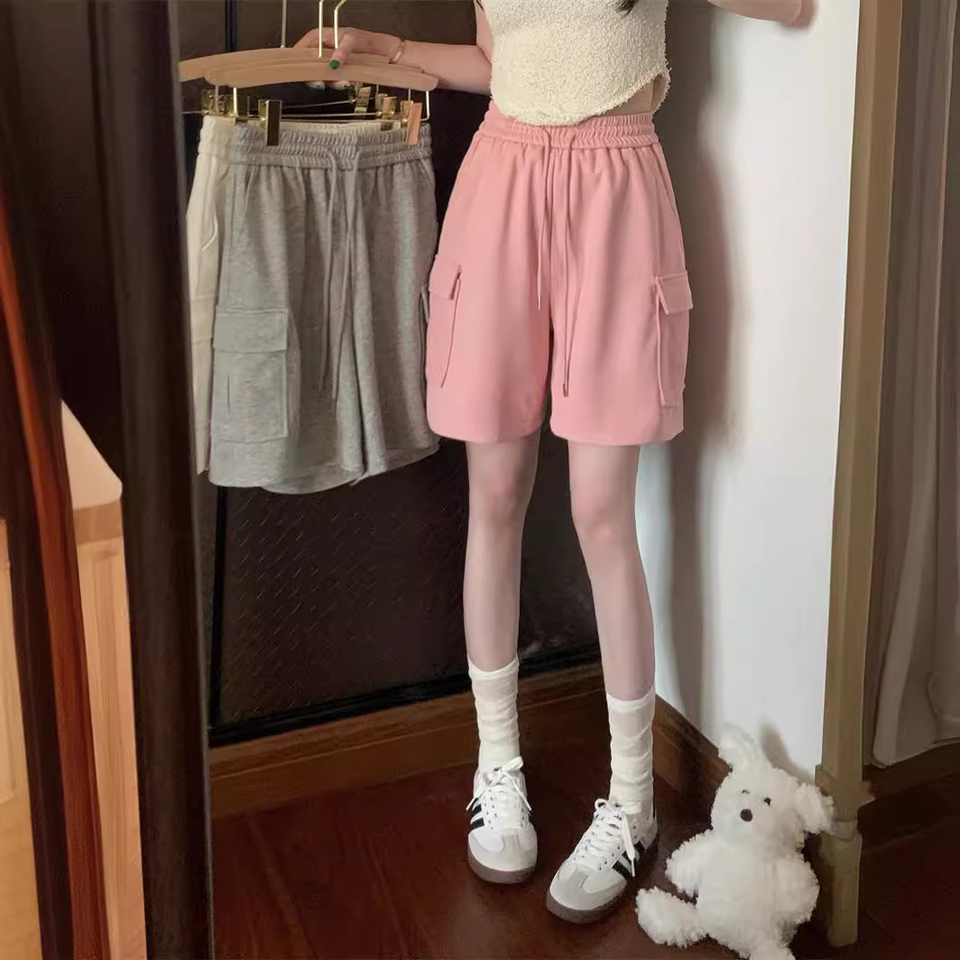 | nameOriginal | Pink Workwear Sports Shorts Women's Pants Summer Elasticity Waist Design Sense Niche Loose Straight Leg Wide Leg Casual Pants |