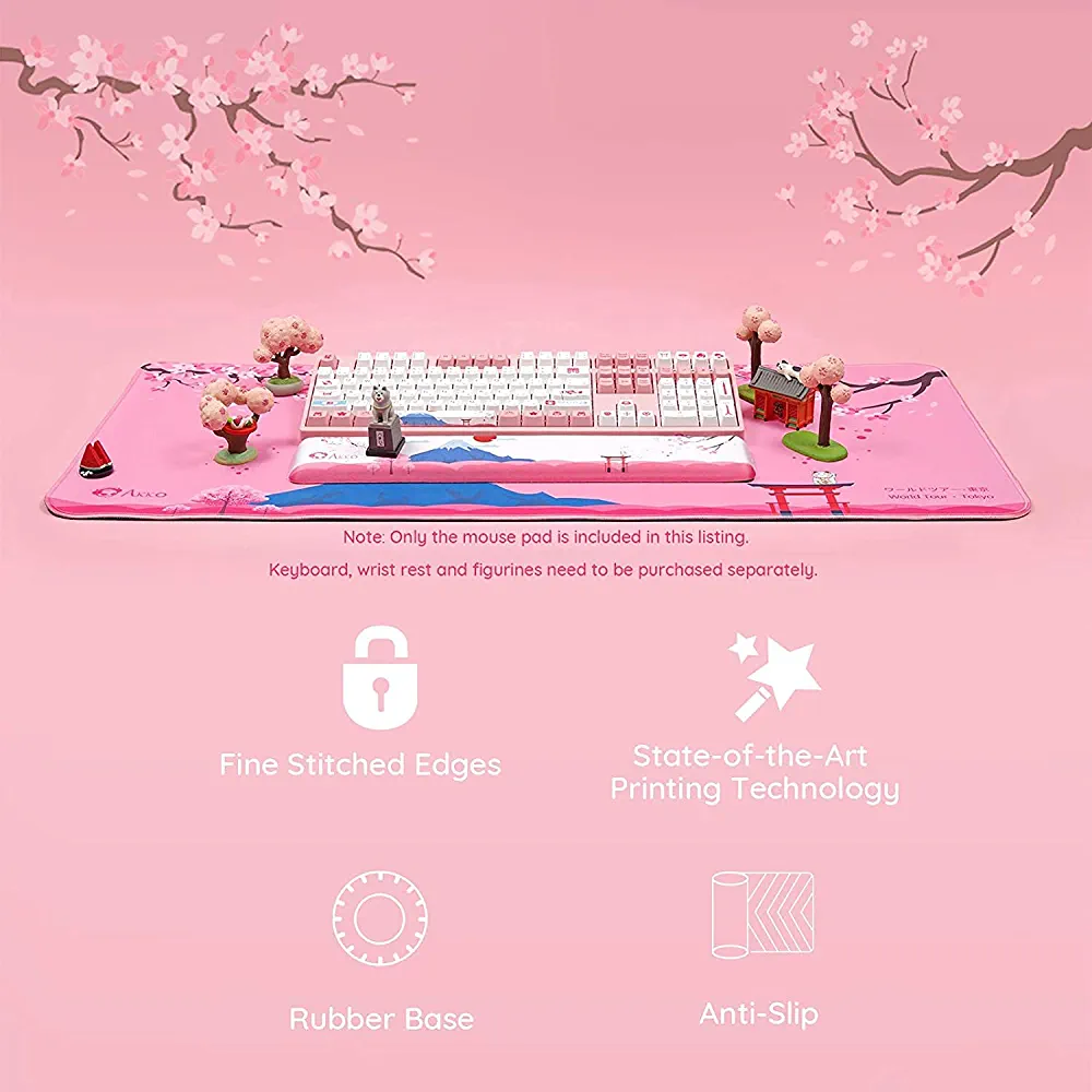 | descriptionOriginal | Experience the Culture of Tokyo Tokyo is an Asian city with rich history and culture, and it's a trending travel spot. Tokyo R2 Mousepad Specification Base Material: Natural Rubber Surface Material: Fine Fiber Dimension: 400mm x 900mm (15.7inch x 35.4inch) Anti-slip Rubber Base The soft and dense non-skid nature rubber base keeps this desk pad firmly in place. This large mouse mat remains uniformly flat even over imperfect surfaces. Just immerse into your work or games without worrying about the annoying mouse pad movement. Superior Control Surface Akko extended mouse pad adopts textured micro-weave cloth surface on cover with enhanced command to provide the excellent balance between glide and control. The performance-tuned surface optimizes mouse tracking accuracy for both optical and laser sensors. Highly Durable Design Frayed edges and low-quality materials are problems many gamers are familiar with. The Akko anti-fray mousepad addresses these issues with an advanced cloth textile chosen only after countless hours of testing. Stitching along the edges of the surface ensure it will never fray or peel. Water-resist Coating A spill-proof coating makes liquids slide right off the surface. Effectively prevent damage from spilled drinks or other accidents. Easy to clean, just wipe with a wet cloth or paper. |