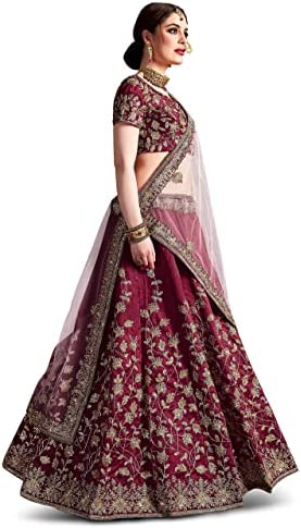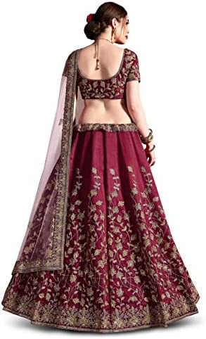 | nameOriginal | Zeel Clothing Women's Embroidered Raw Silk Semi-Stitched Lehenga Choli With Dupatta(7011-Red-New-Bridal-Wedding Maroon, Free Size), Pink, One Size |
