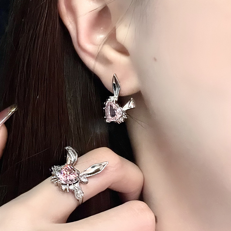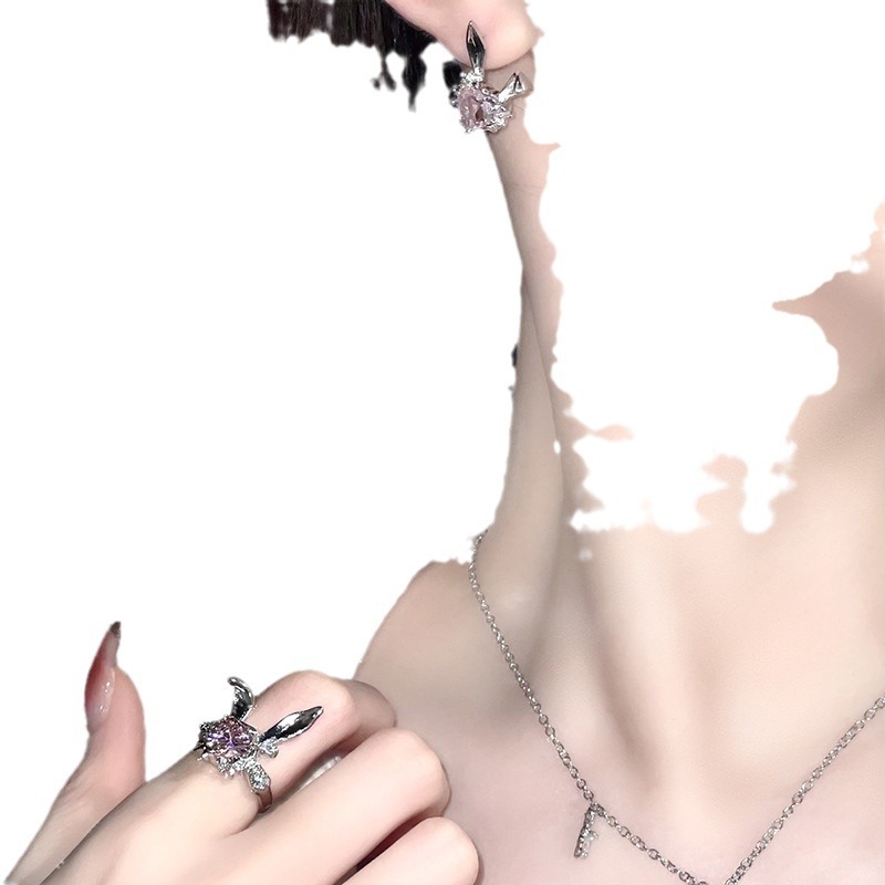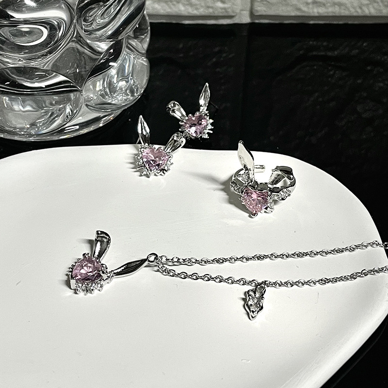 | nameOriginal | Pink zircon rabbit ring stud earrings necklace jewelry suit niche design sweet high sense personality Fashion Female |