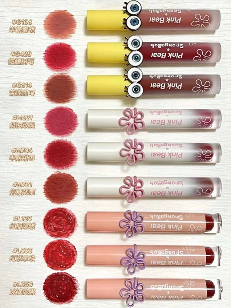 PINKBEAR Pico Bear Mirror Water Gloss Lip Glaze Pico Bear Pudding Lipstick Student SpongeBob SquarePants Co-branded 106