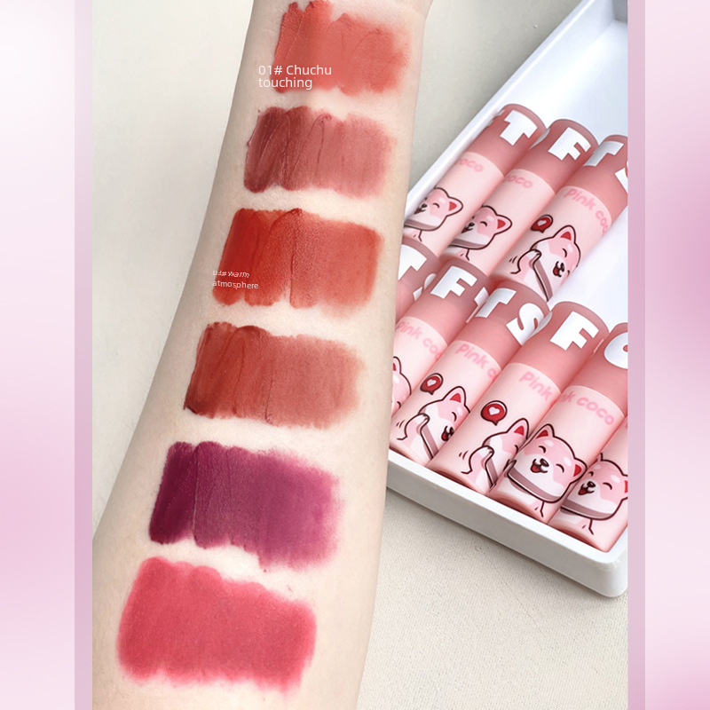 | nameOriginal | Pinkcoco Bubble Bear Matte Lip Glaze Non-fading Non-stick Cup Mist Velvet Lip Mud Lip Gloss High Color Value Makeup |