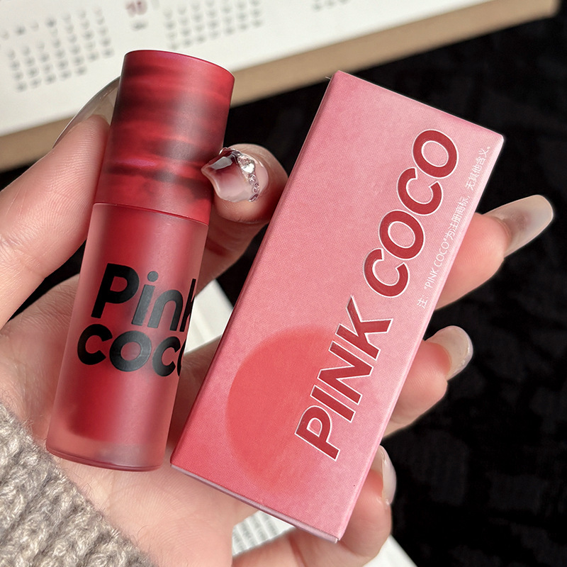 PINKCOCO sunset soft yarn lip glaze sunset red brown matte lip glaze matte surface hazy pure desire wind lipstick cross-border