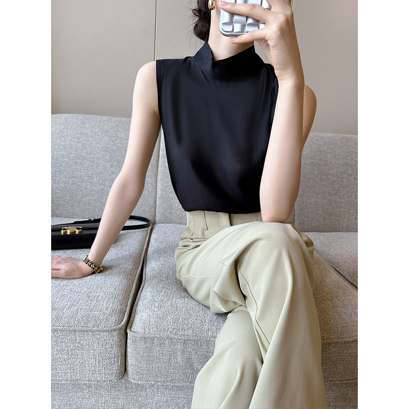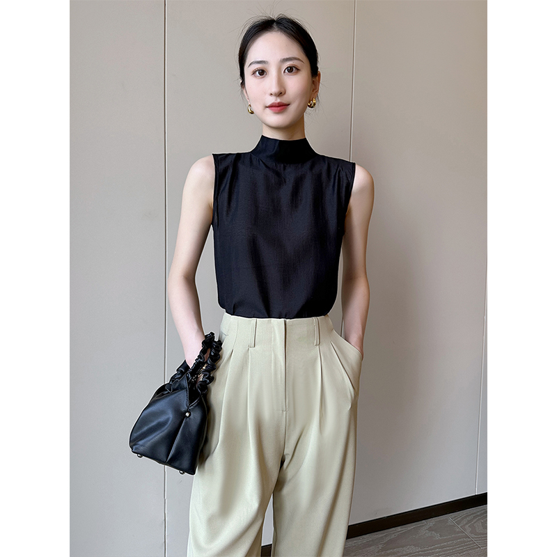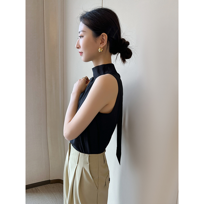 | nameOriginal | PINKEEN Black Sleeveless Chiffon Shirt Women's Summer 2024 New Casual Elegant Top All-match Western Style Small Shirt |