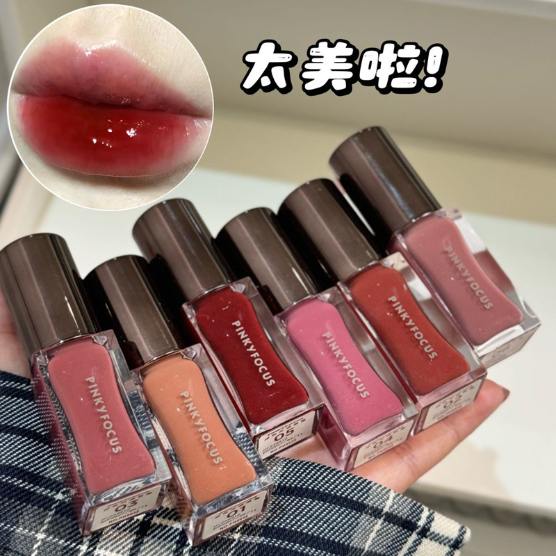 PinkyFocus scarlet glossy lip gloss durable color not easy to remove makeup water gloss mirror glass lip tender lip glaze