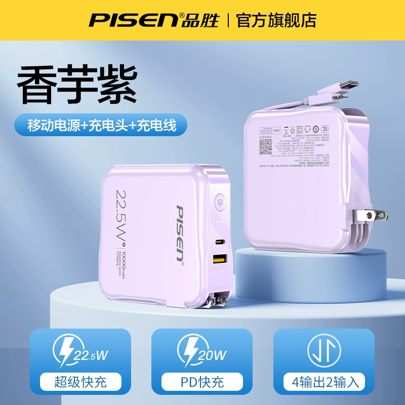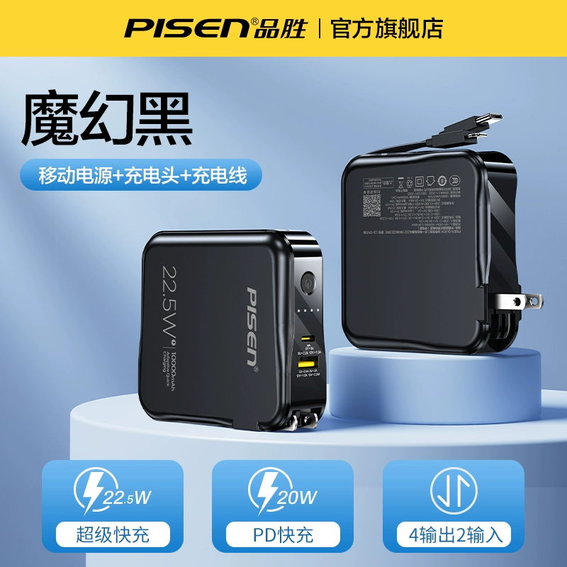 | nameOriginal | Pinsheng Power Bank comes with plug 10000 mAh super large capacity 22.5W charger two-in-one comes with cable suitable for Huawei Apple portable power bank super fast charging new model |