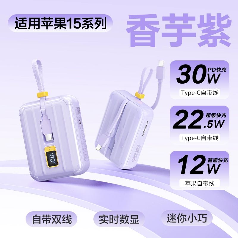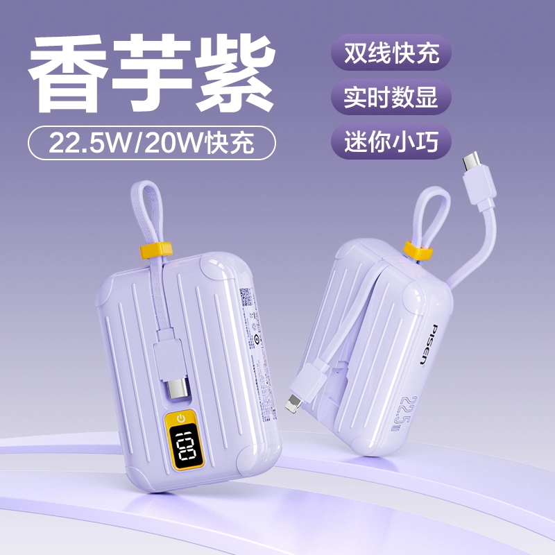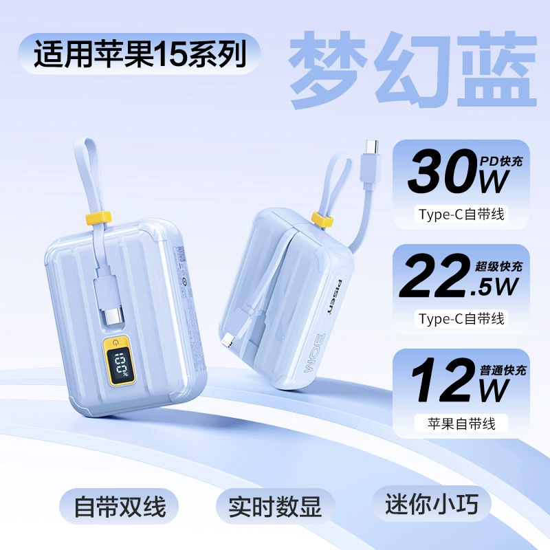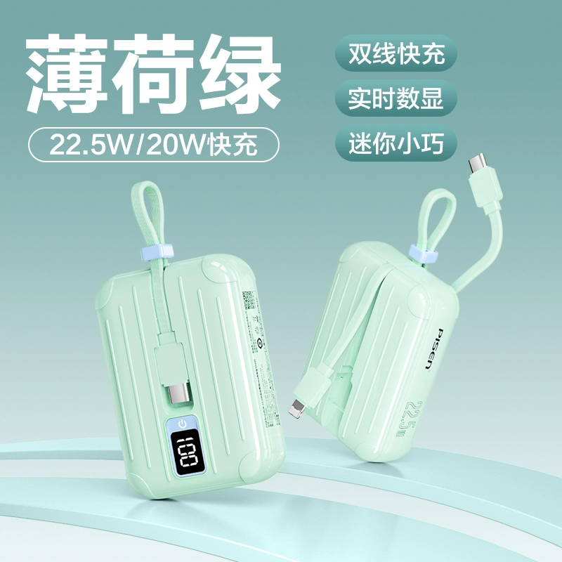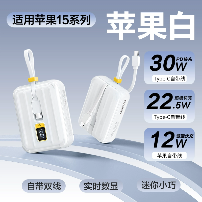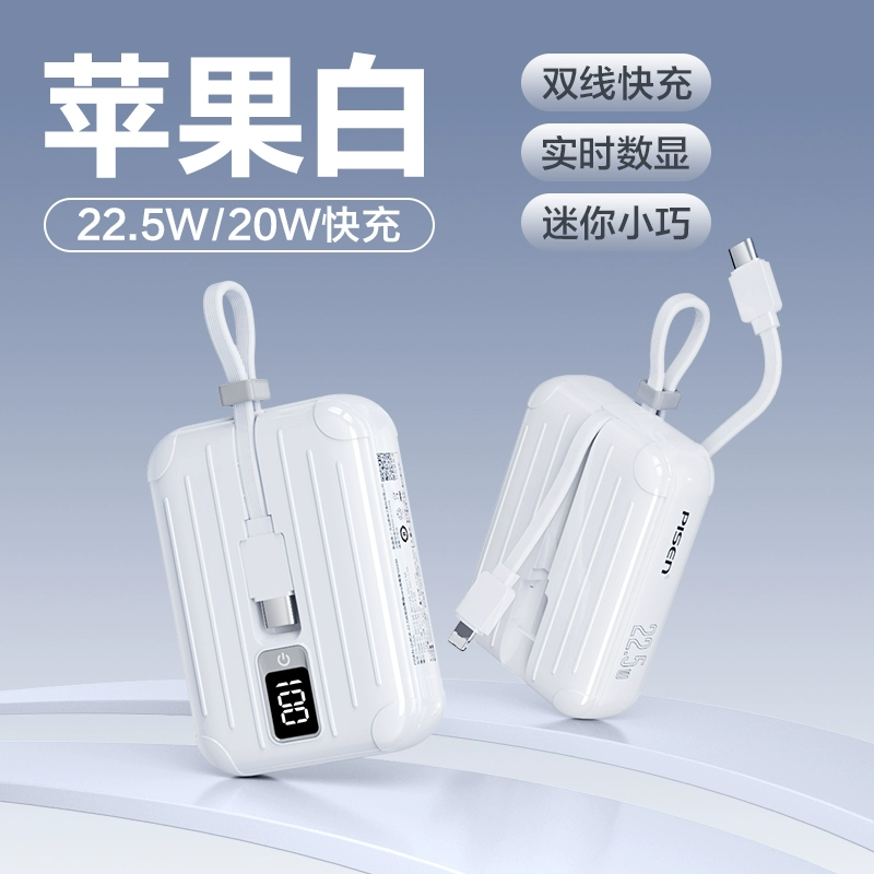 Pinsheng small suitcase power bank 30W suitable for iPhone 15 fast charging dual built-in cable 10000 mAh 10,000 ultra-thin compact portable power bank suitable for Huawei Xiaomi Apple mobile phone