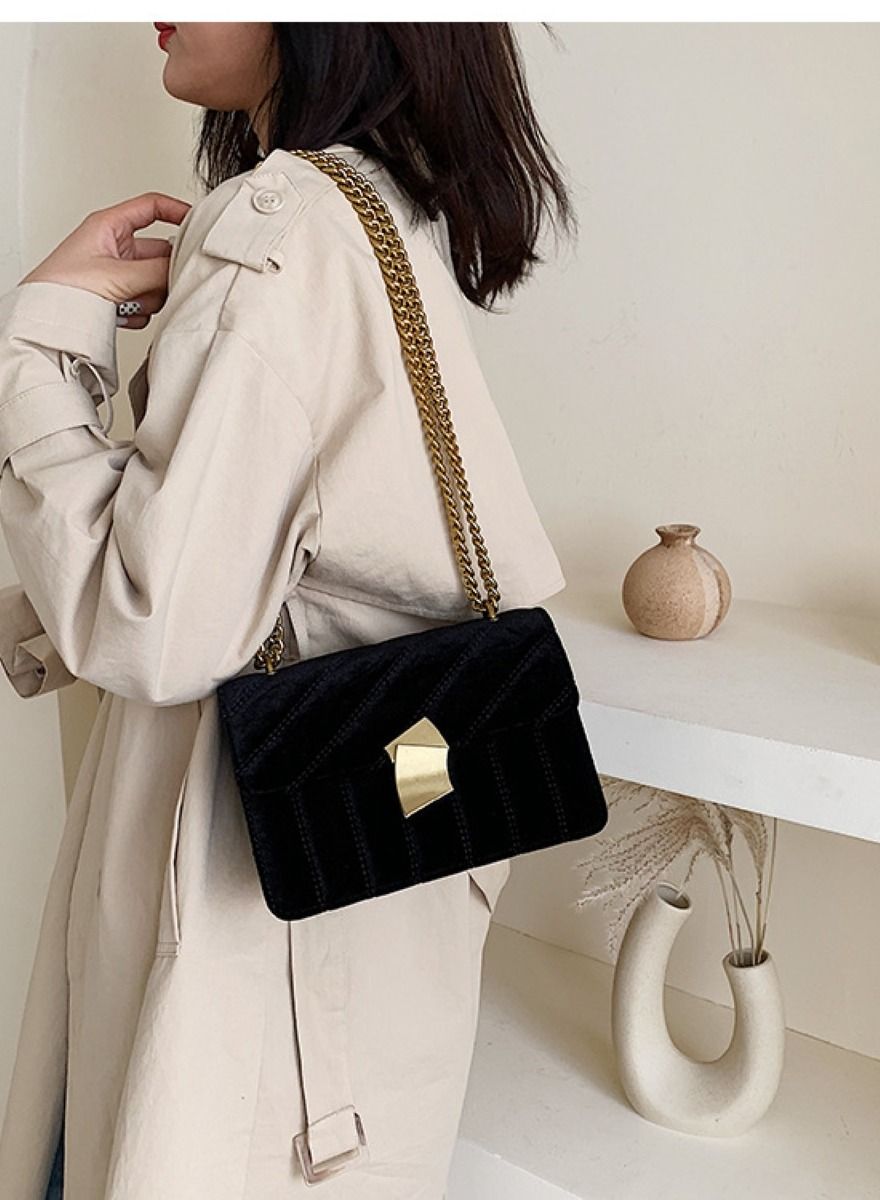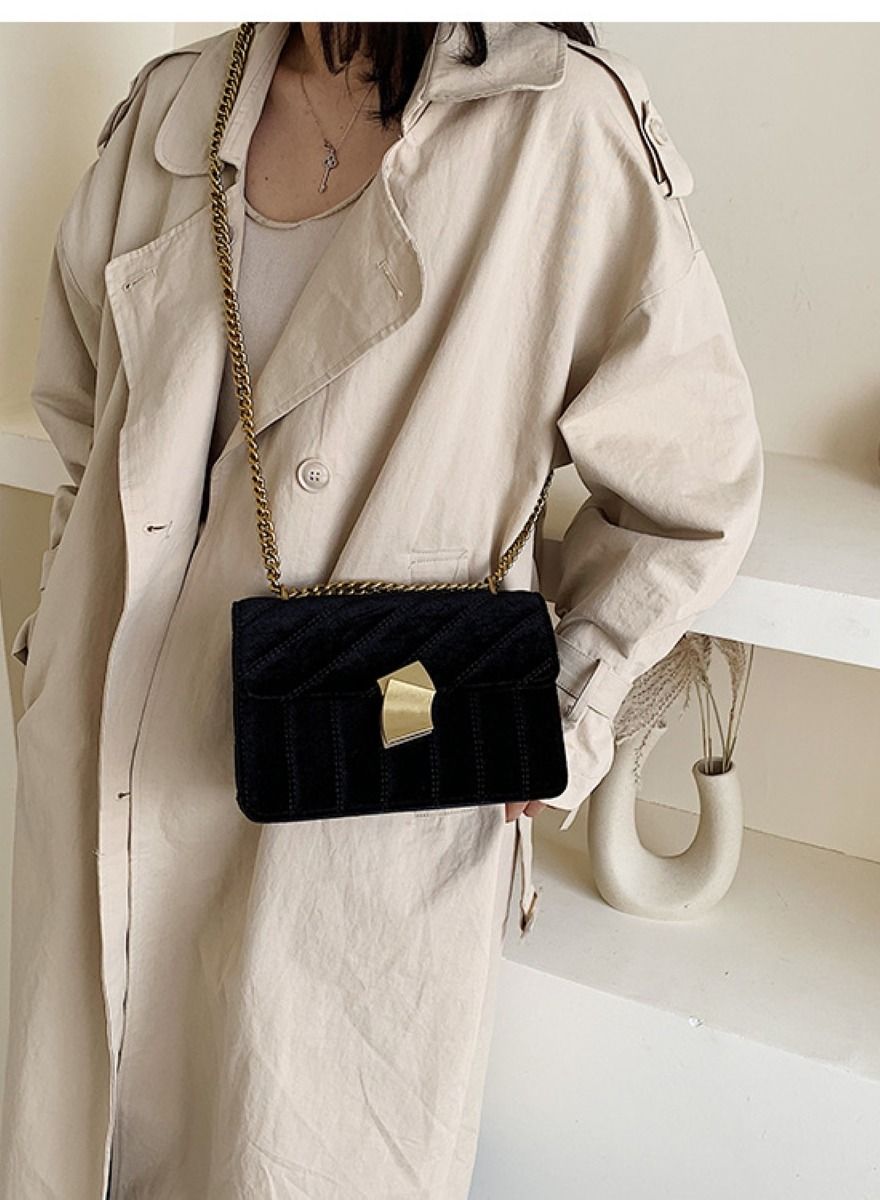 The Velours pinstrip messenger bag is the perfect accessory for the modern, stylish individual on the go. Made from high-quality velour material, this bag is both durable and comfortable to wear. The pinstrip design adds a touch of sophistication to the overall look of the bag, making it suitable for both casual and formal occasions. The spacious interior provides ample room for all your essentials, including a laptop, books, and other personal items. The adjustable shoulder strap ensures a comfortable fit for all body types, while the multiple pockets and compartments keep your belongings organized and easily accessible. Whether you’re commuting to work or running errands around town, the Velours pinstrip messenger bag is the perfect choice for anyone looking for a stylish and functional bag.