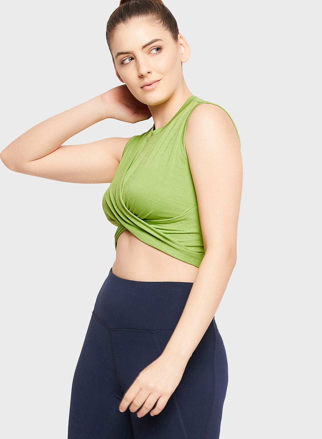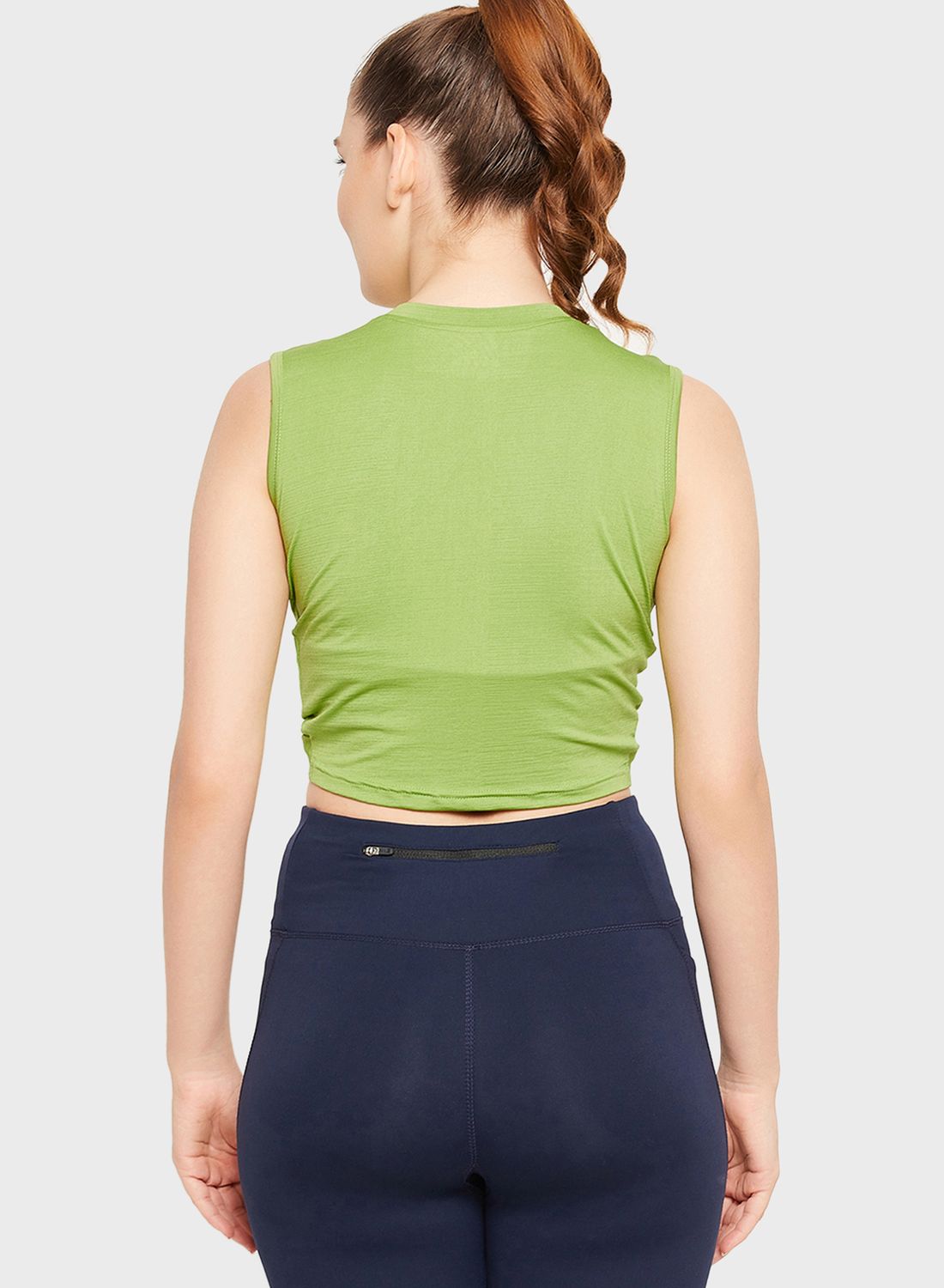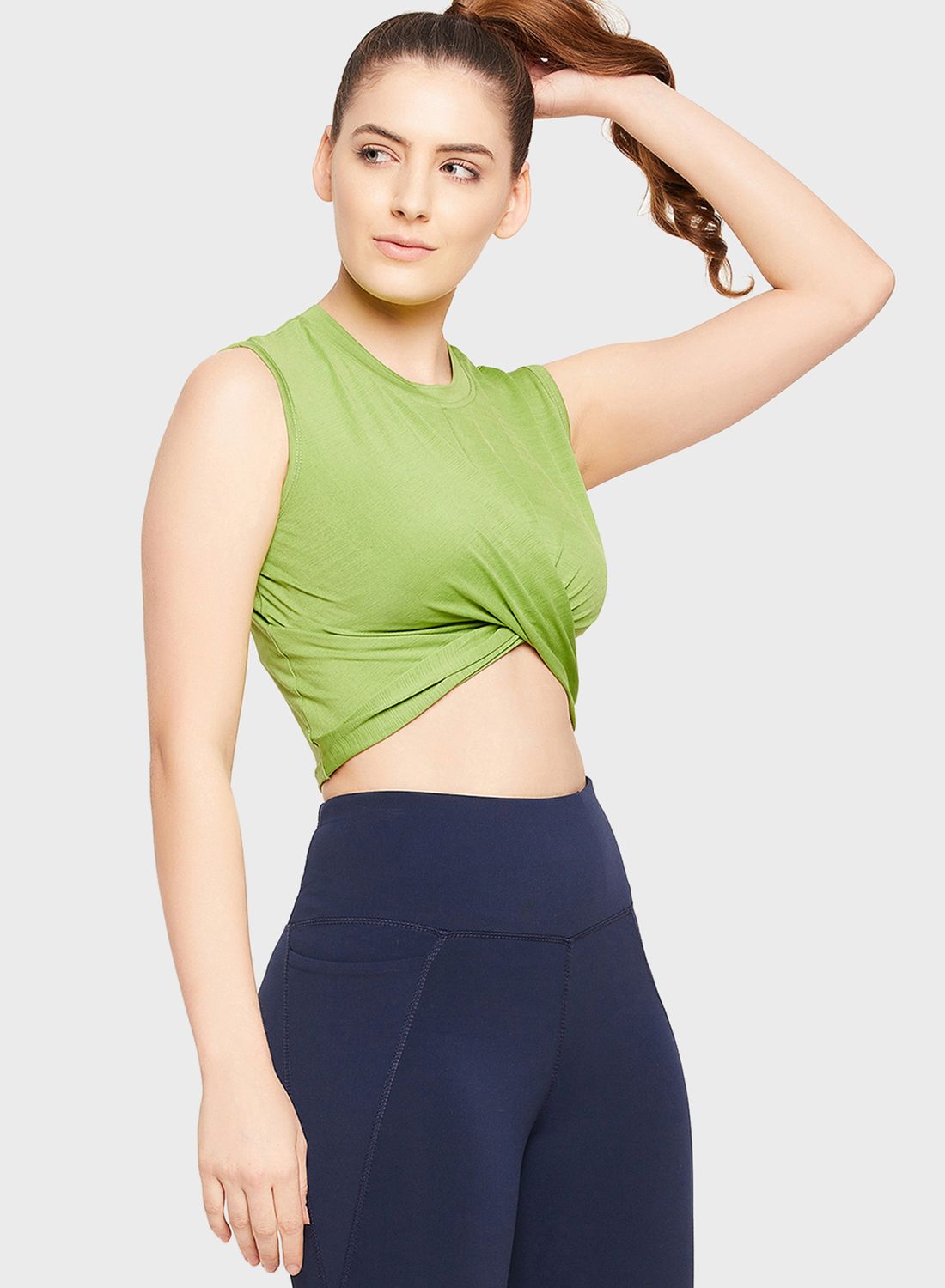 Pista Green Active Crop Top with Front Knot and Comfortable Fit.