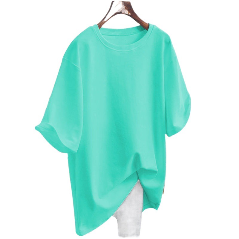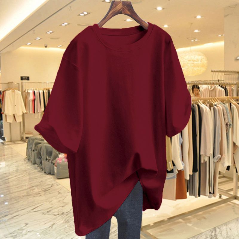 Pitaya Color Mid-length Short-sleeved Big Shirt Women’s Summer European Large Edition Hip Covering Clothes Missing Loose Half-sleeved Shirt