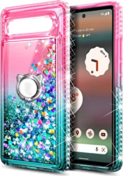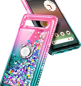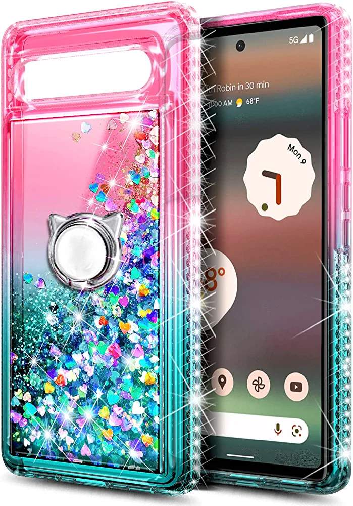 | nameOriginal | NZND Case for Pixel 6A with Tempered Glass Screen Protector, Ring Holder/Wrist Strap, Glitter Liquid Floating Waterfall Durable Girls Kids Women Cute Phone Case (Pink/Aqua) |