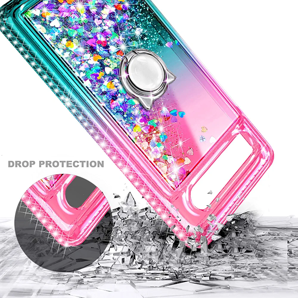 This durable and cute case for girls and women features a colorful gradient design with glitter and sparkling bling diamonds that float in a liquid quicksand.