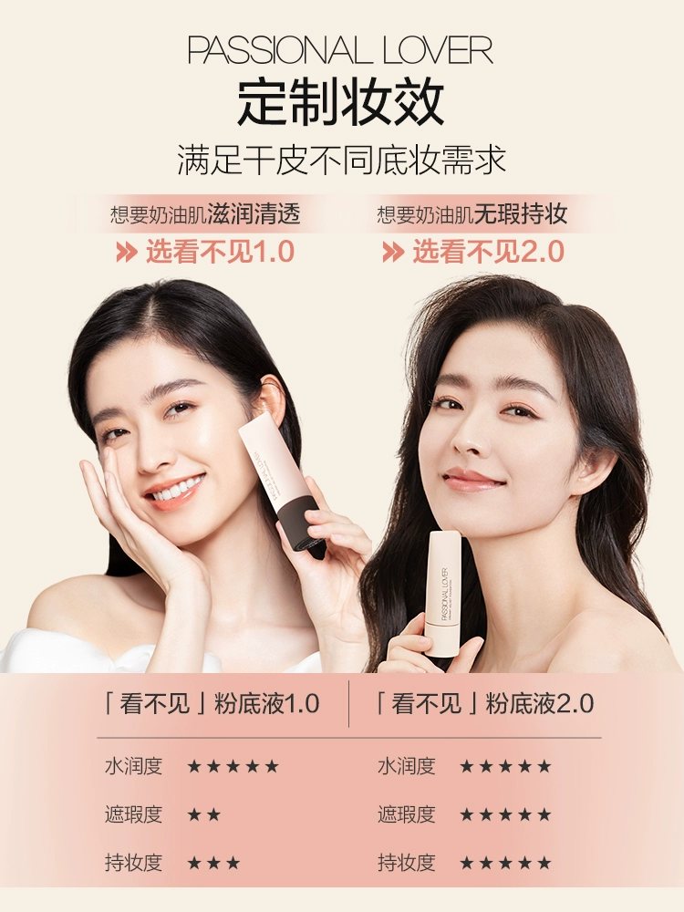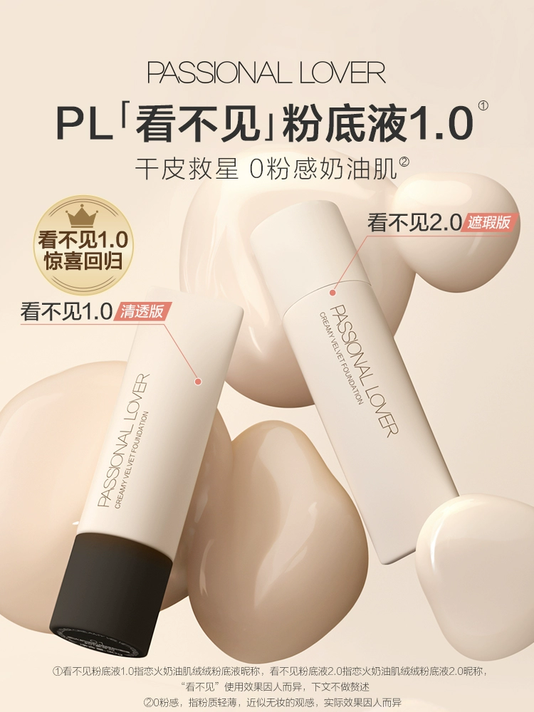 PL invisible liquid foundation for dry skin, creamy skin, long-lasting non-removing makeup concealer, moisturizing, light and docile, nourishing the skin