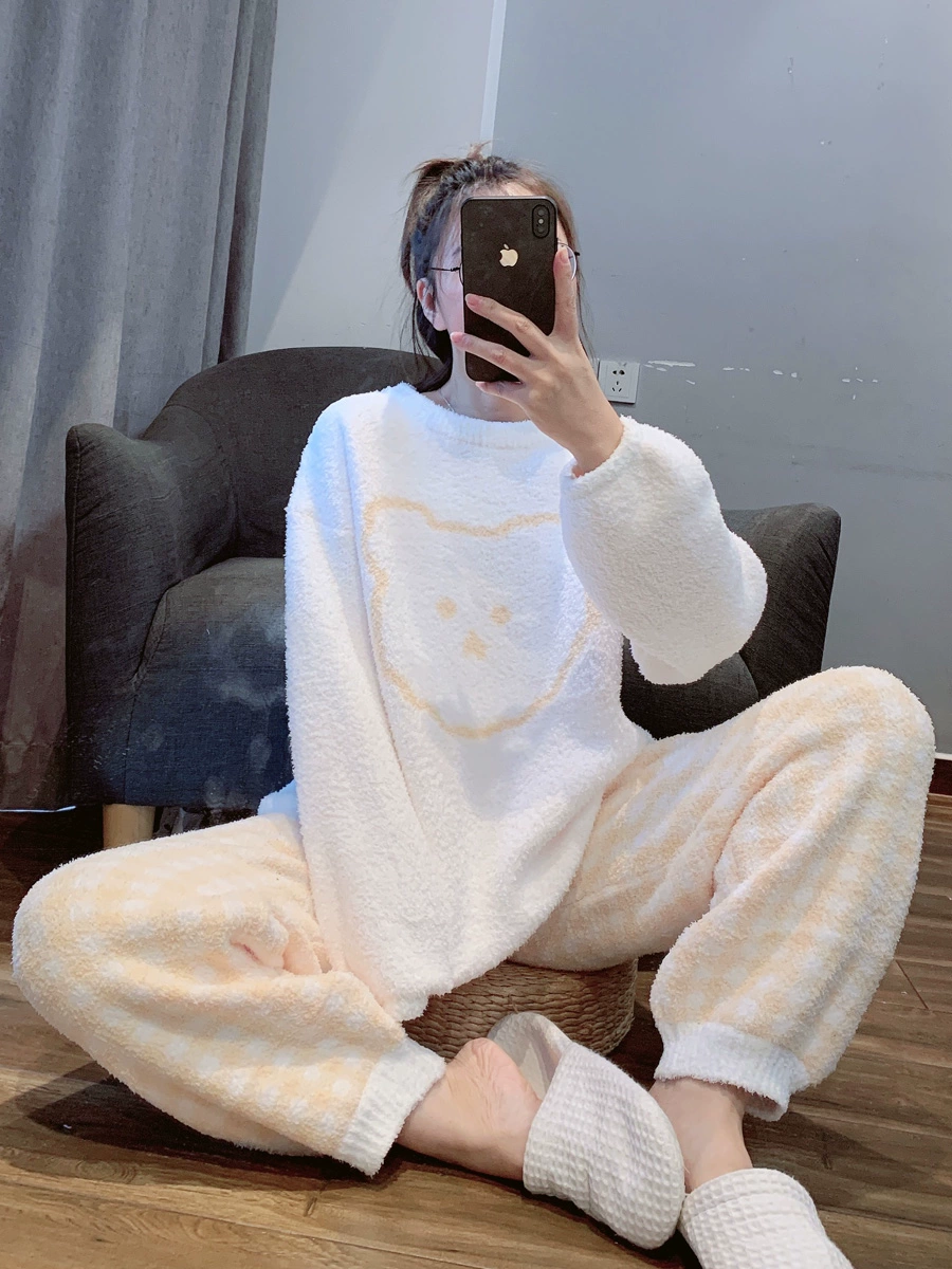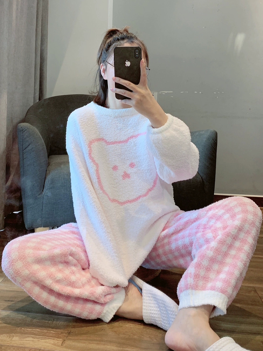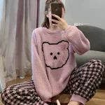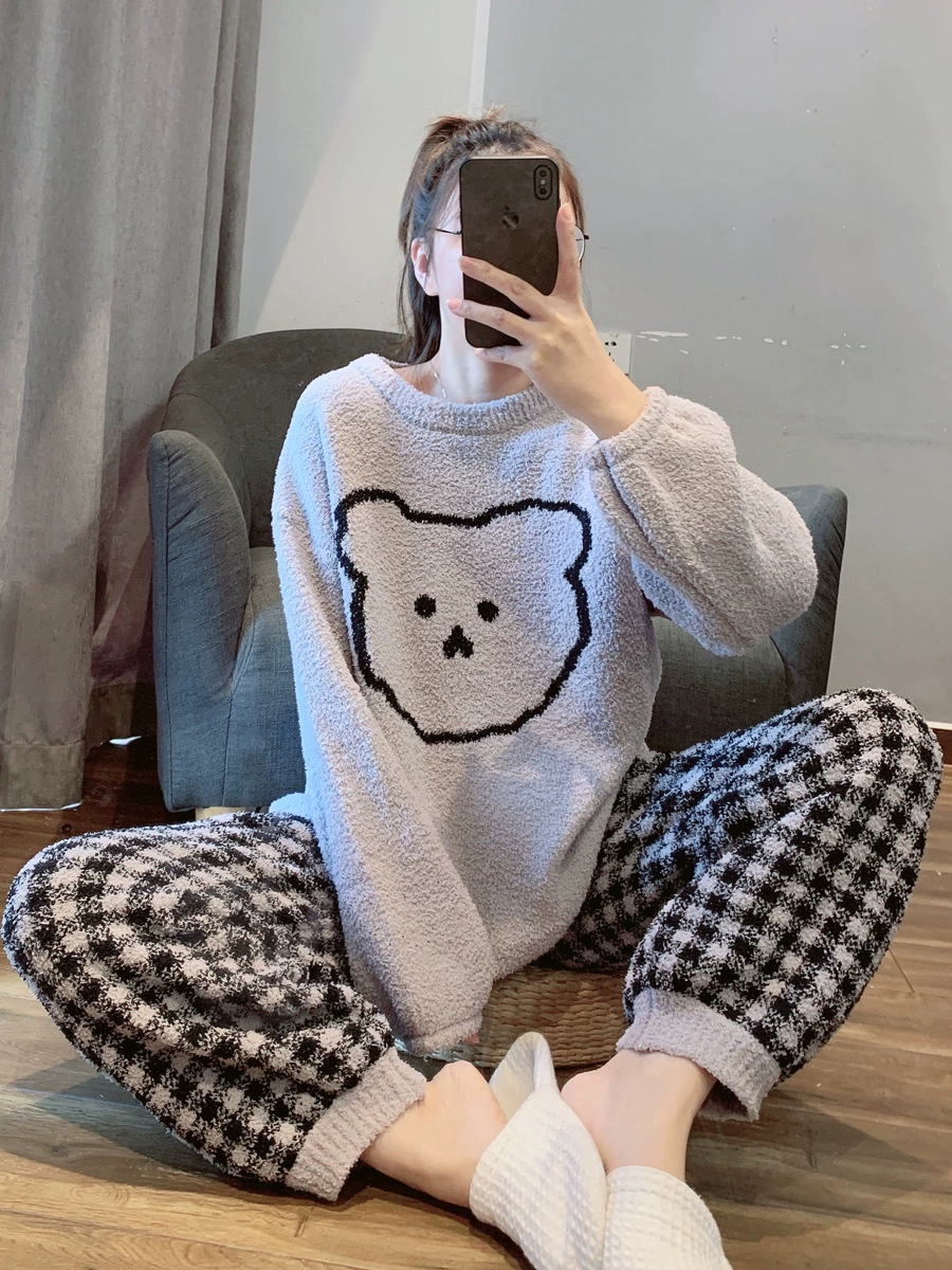 | nameOriginal | Plaid bear soft pajamas for women winter thickened and velvet cute coral velvet home clothes set can be worn outside |