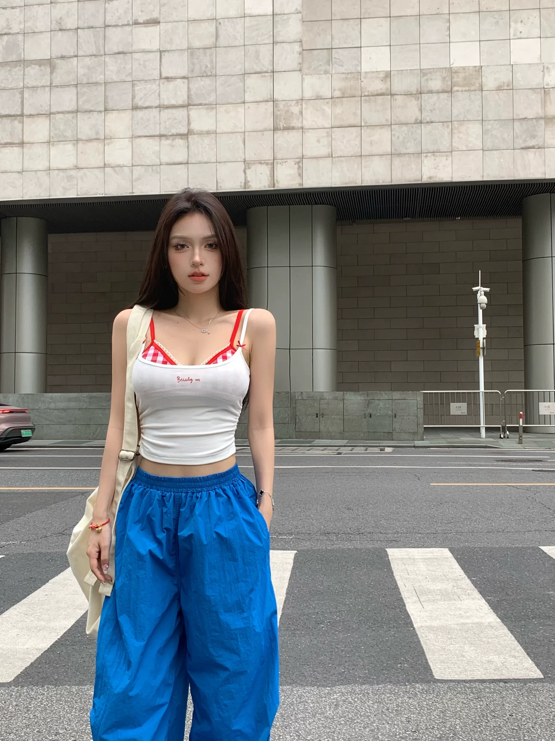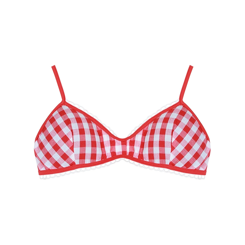 | nameOriginal | Plaid bra camisole three-piece suit with lace trim |