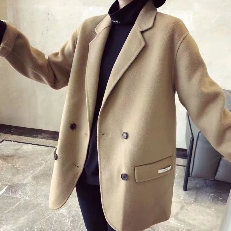| nameOriginal | Plaid double-sided cashmere coat women's high-end woolen suit jacket fashionable temperament mid-length woolen wool Korean style loose |
