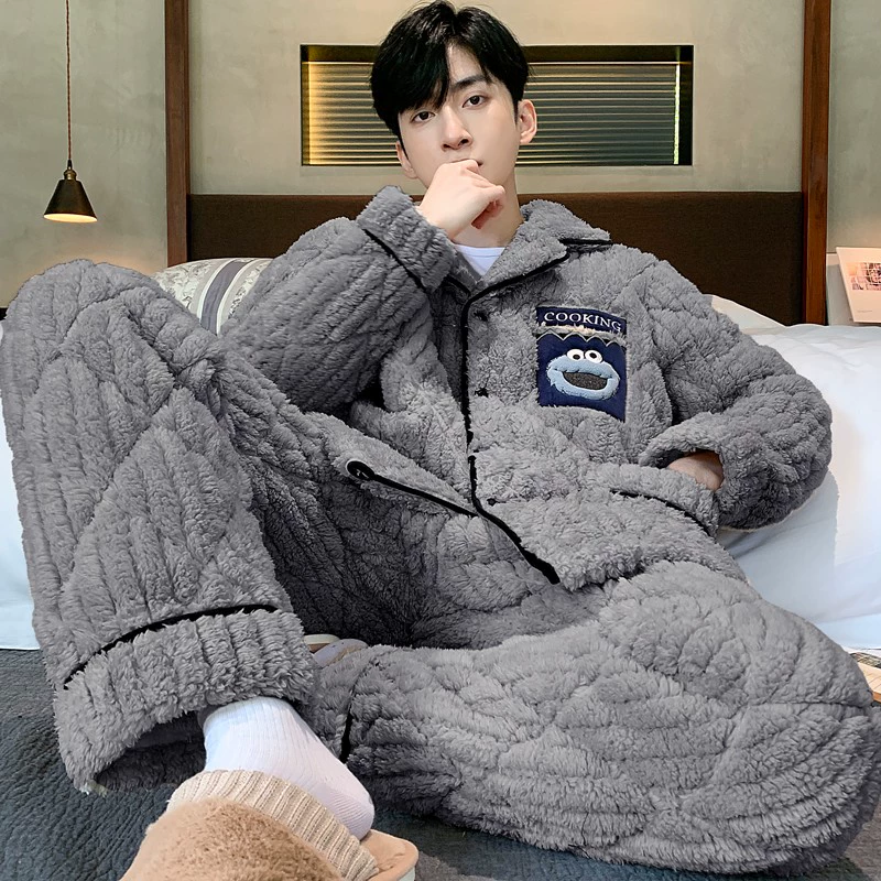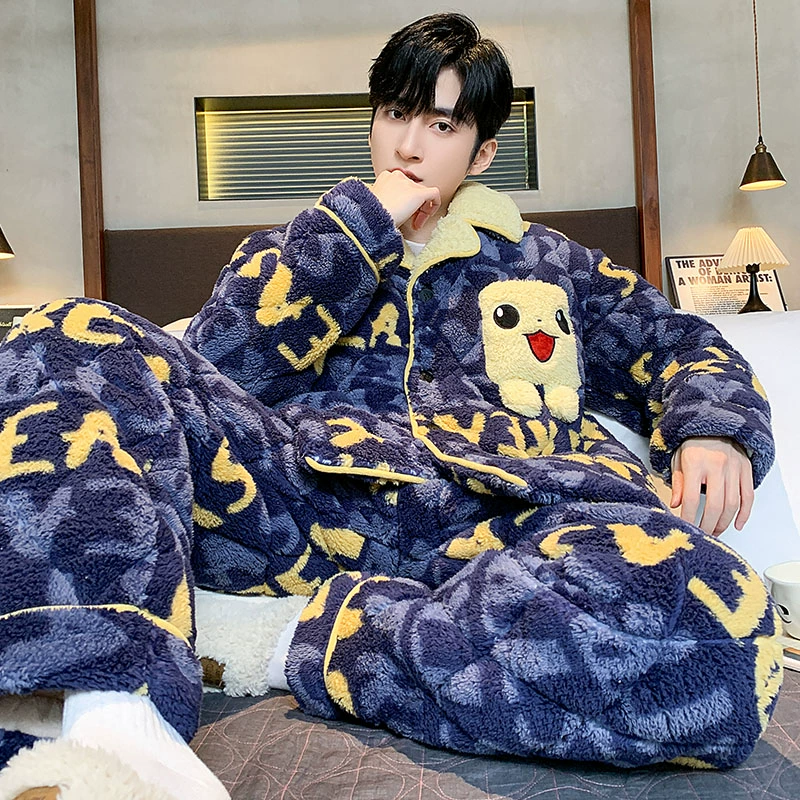 | nameOriginal | Plaid pajamas men's winter day plus velvet thickened three-layer quilted flannel coral velvet youth home wear |
