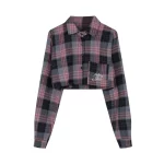 Plaid POLO collar sweet and cool vest long-sleeved shirt