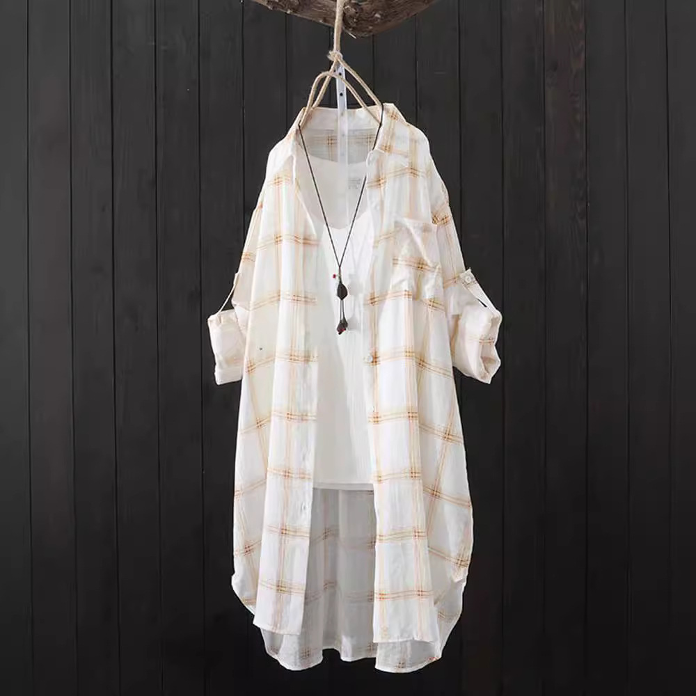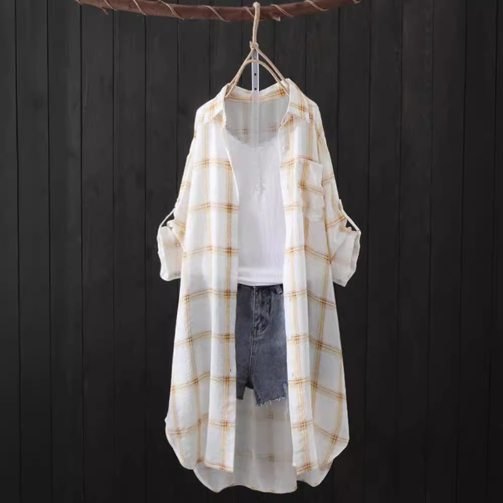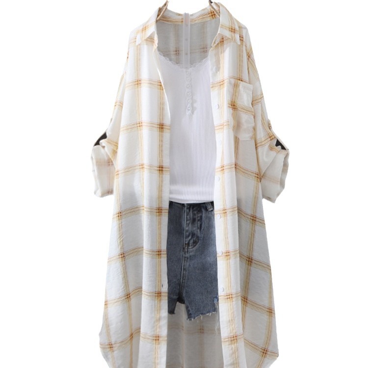 | nameOriginal | Plaid Shirt Women's Summer 2023 Korean-style Loose Mid-length Sunscreen Clothing Hong Kong-style Thin Coat Shirt Women's Trendy |