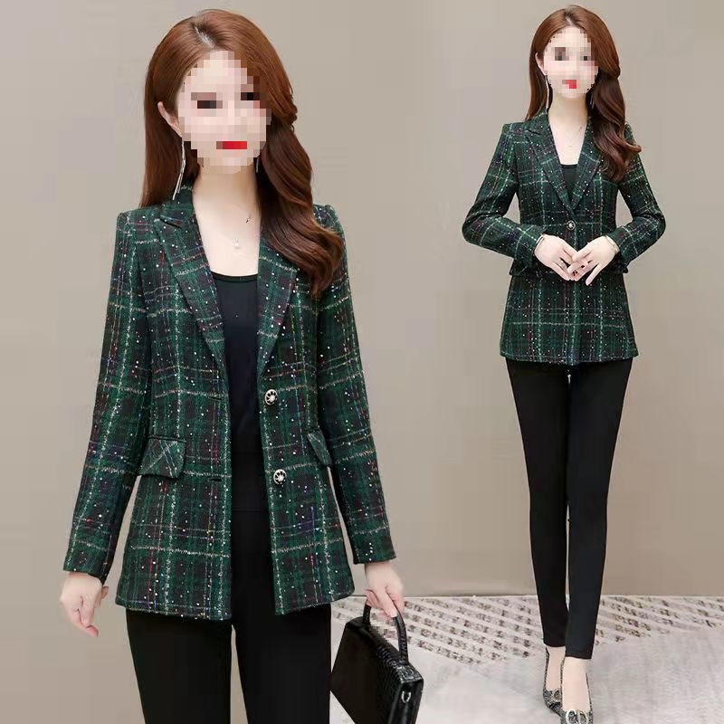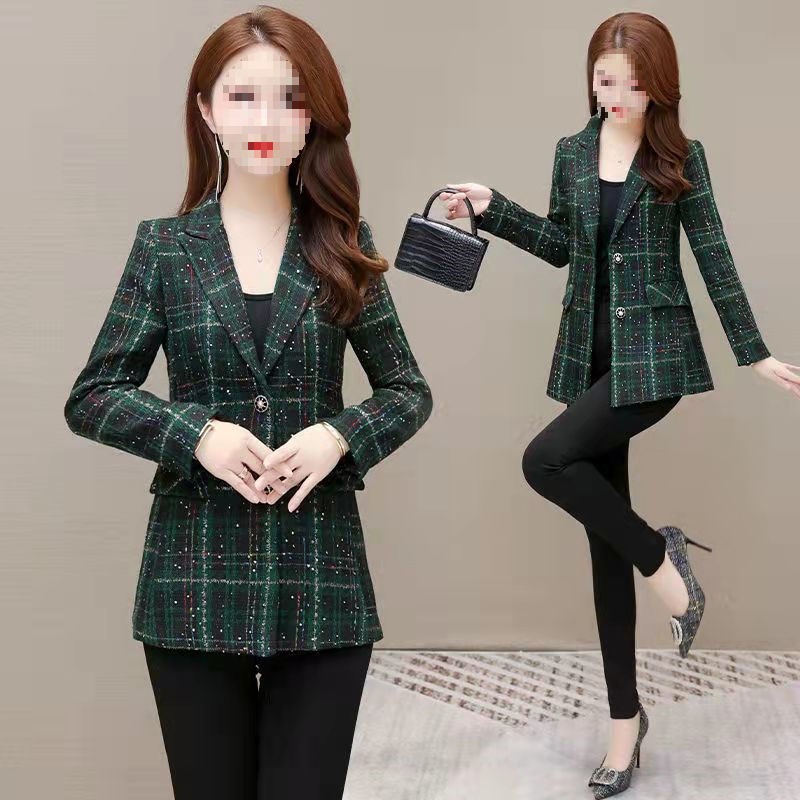 Plaid Suit Jacket Women’s 2022 New Early Spring and Autumn Short High-end Women’s Suit Popular This Year