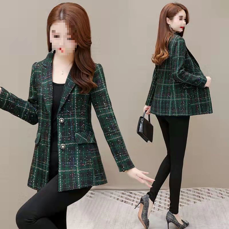 Plaid Suit Jacket Women's 2022 New Early Spring and Autumn Short High-end Women's Suit Popular This Year