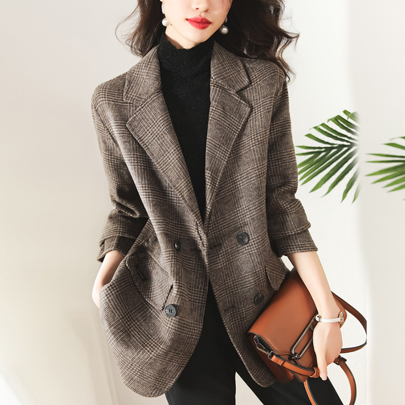 | nameOriginal | Plaid suit woolen coat for women Spring and Autumn 2023 new fashion brand fashionable western style Chanel style double-sided wool coat |