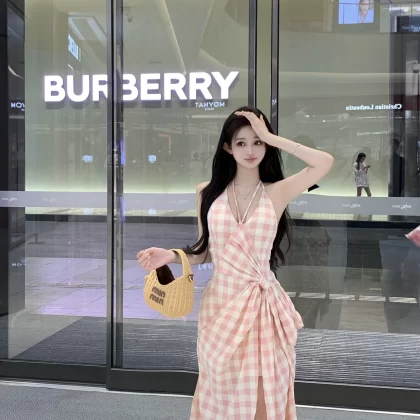 | nameOriginal | Plaid suspender dress summer slim bow tie |