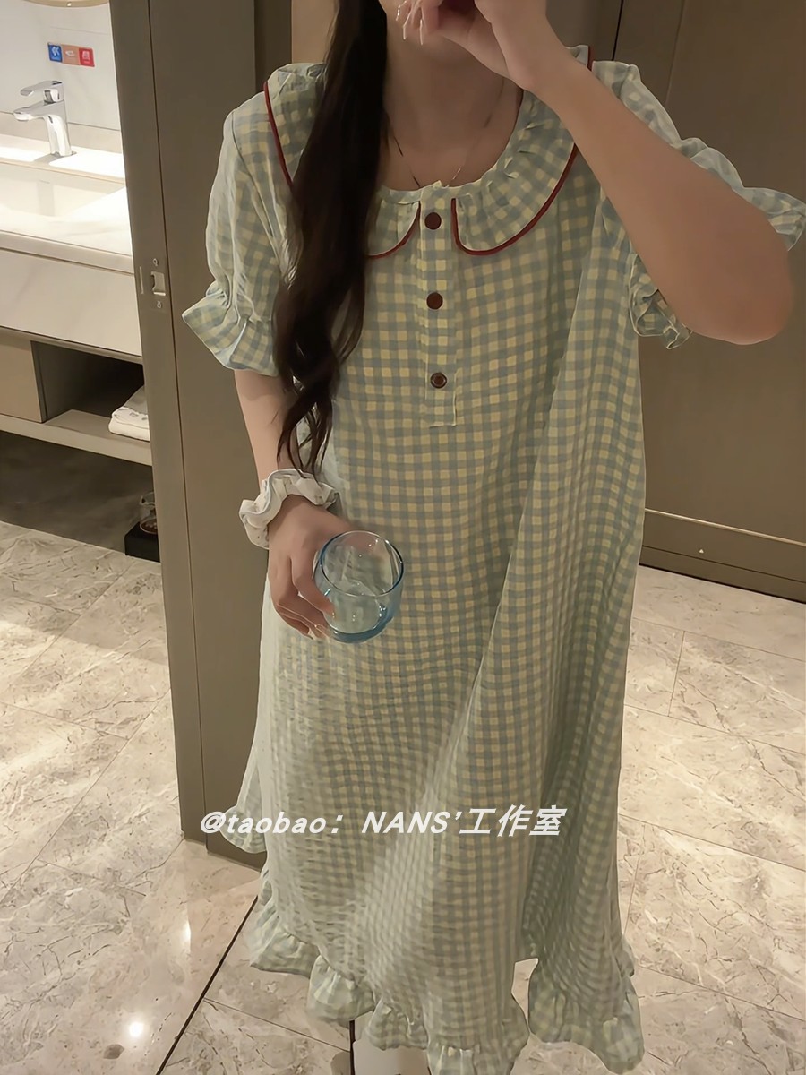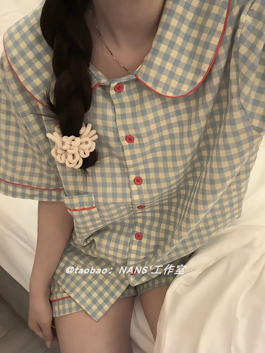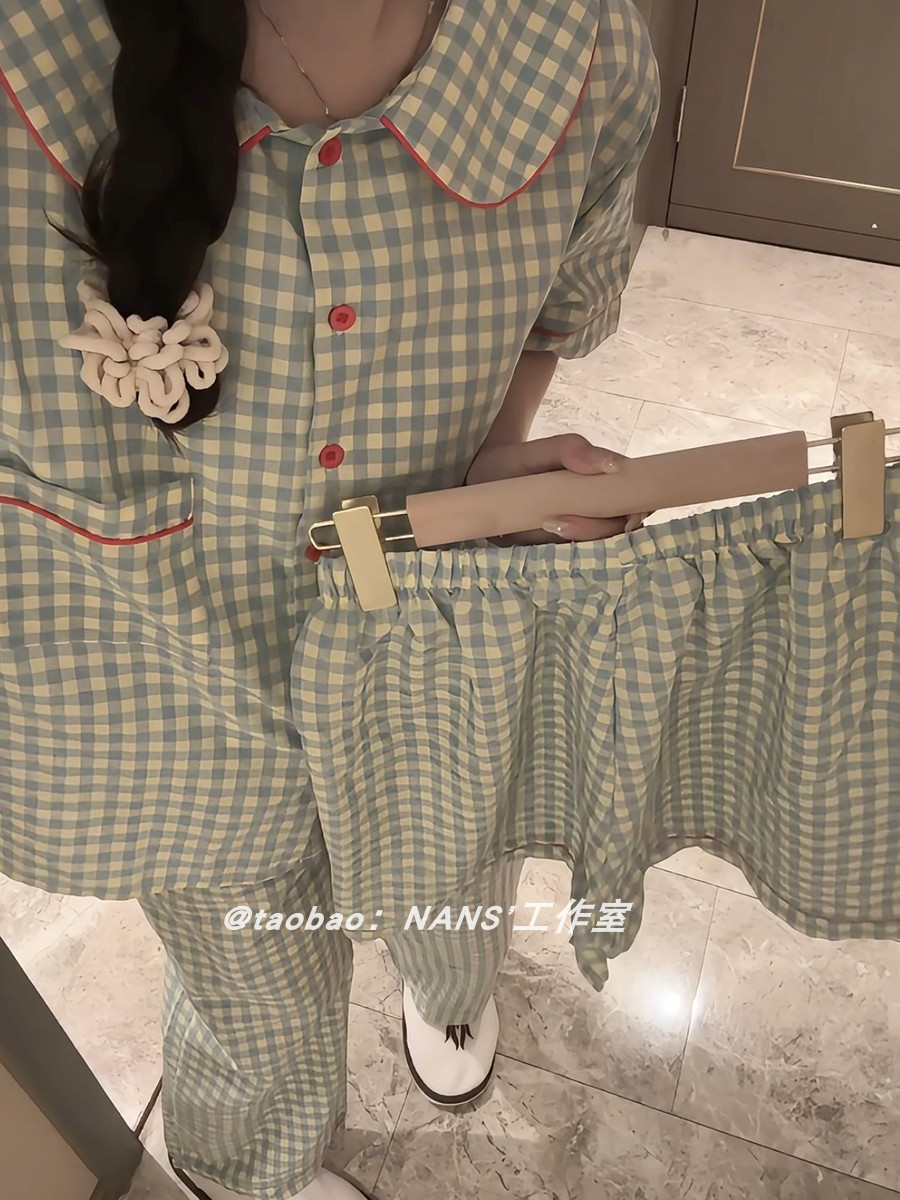 Plaid women's short-sleeved summer student home clothes pajamas