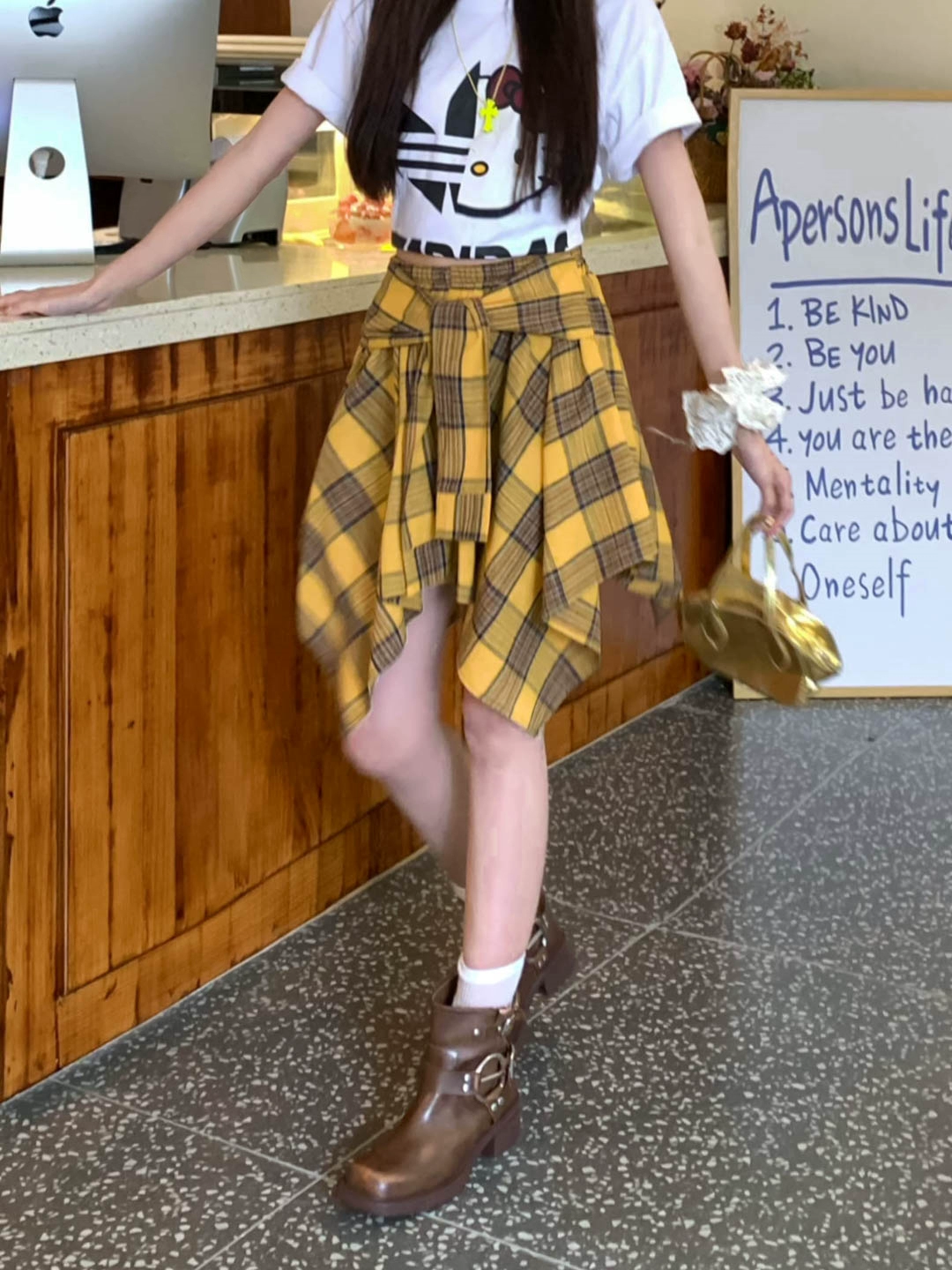 | nameOriginal | Plaid women's summer niche irregular A-line skirt |