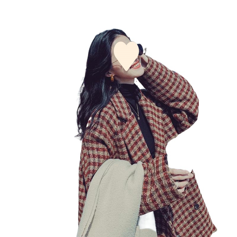 | nameOriginal | Plaid woolen suit jacket for women winter New Korean style loose temperament casual retro thickened woolen coat |