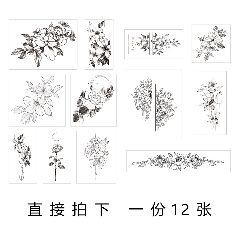 Plain flower tattoo sticker waterproof female long-lasting ins style dark style clavicle sexy arm tattoo large pattern paper simulation