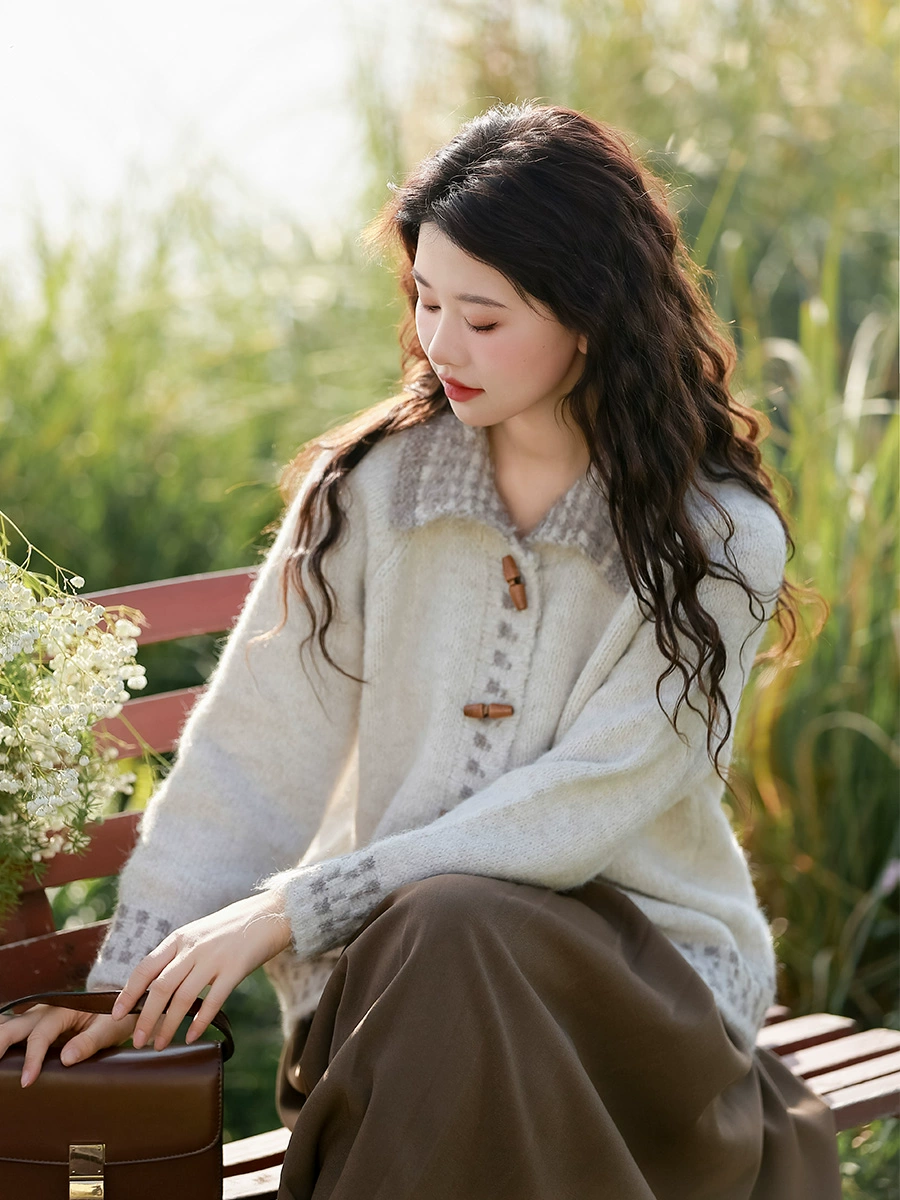 | nameOriginal | Plain left bank lapel wooden button cardigan coat sweater |