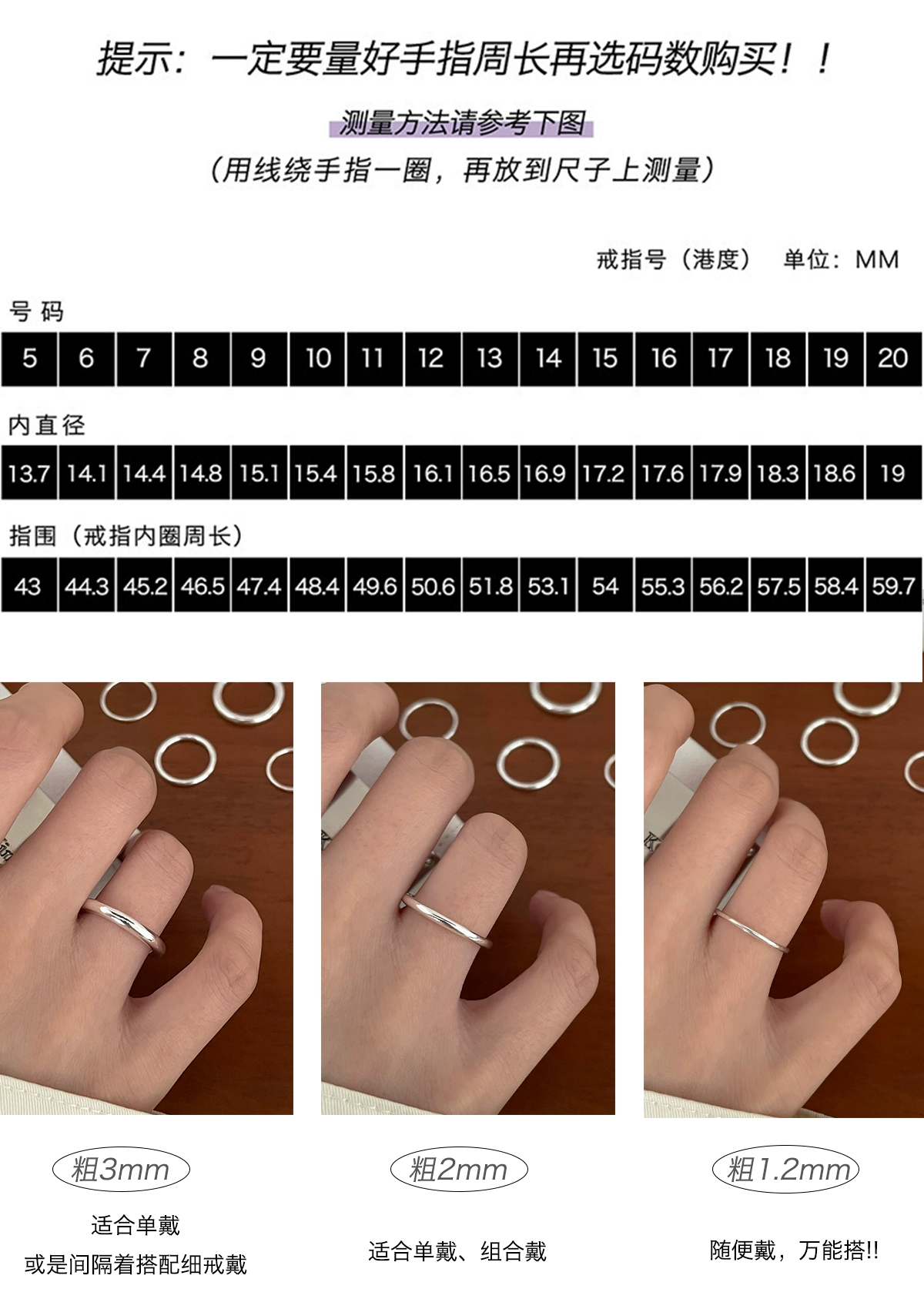 | nameOriginal | Plain ring ring for women sterling silver niche design advanced 2024 new trendy fashion personality ins trendy cool food ring |