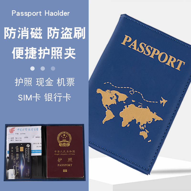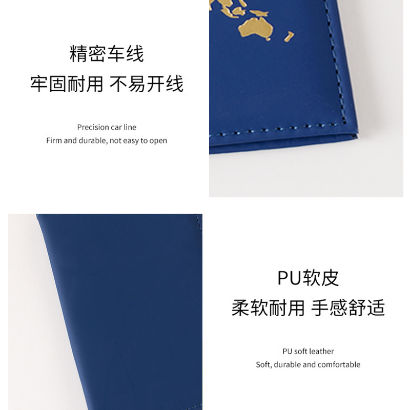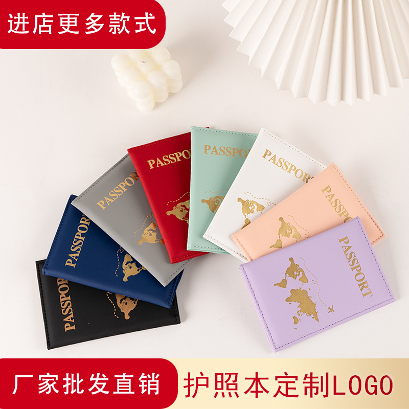 Plain texture PU leather passport protective case boarding pass storage folder factory direct custom bronzing silver logo