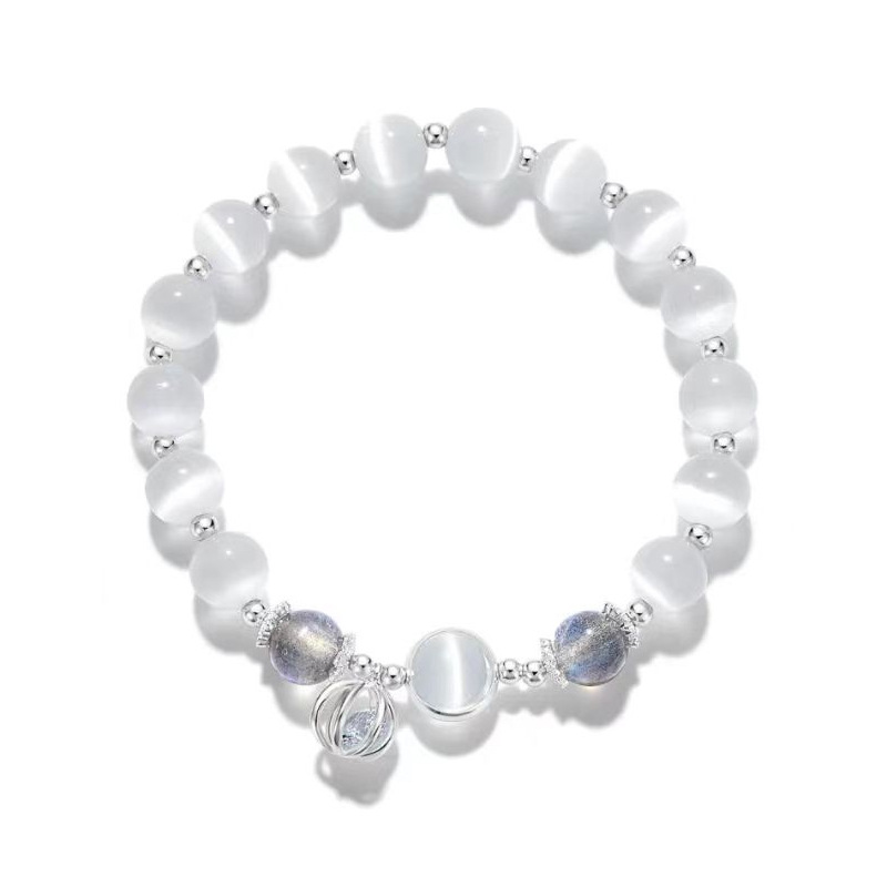 Planet Sterling Silver 925 Bracelet Women's National Fashion Sweet Princess Style Cat's Eye Bracelet Ins High-grade Crystal Bracelet