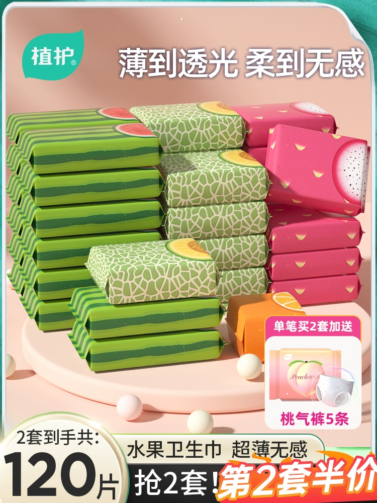 Plant-protected fruit thin and breathable sanitary napkin for day and night use