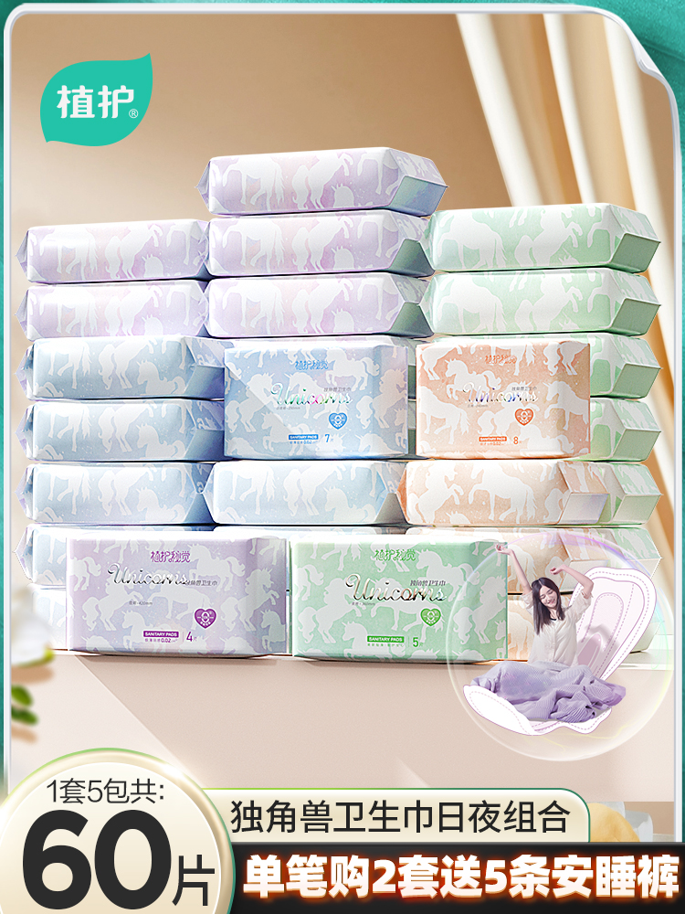 Plant-protected sanitary napkins official flagship store authentic sanitary napkins day and night use full box batch combination package light and breathable aunt pads