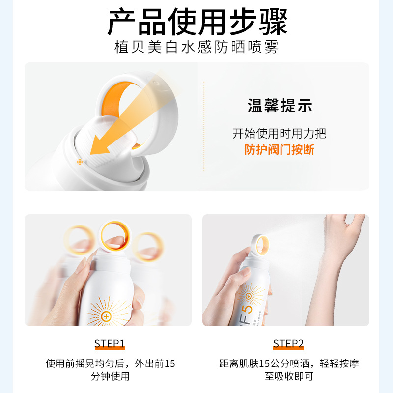 Plant shellfish small aperture whitening sunscreen spray SPF50 waterproof anti-sweat refreshing isolation sunscreen spray cream