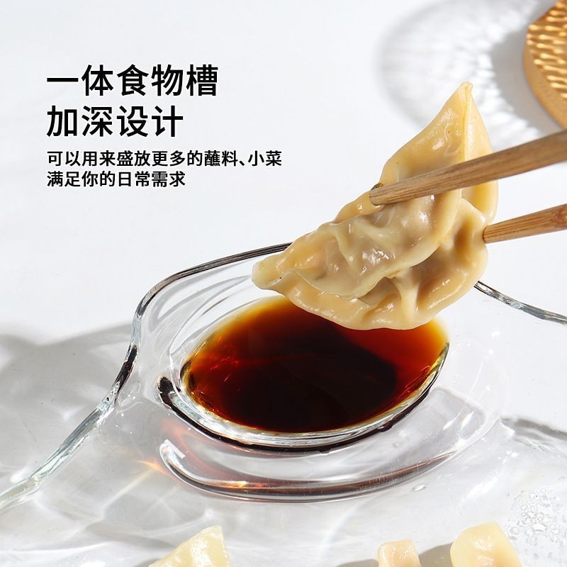 Plastic dumpling plate with vinegar dish fat reduction plate household fan-shaped shell dumpling special plate dipping plate integrated