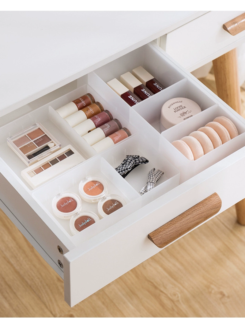 | nameOriginal | Plastic frosted desktop drawer storage box, stationery compartments, stacking and organizing cosmetics, built-in under translucent partitions |